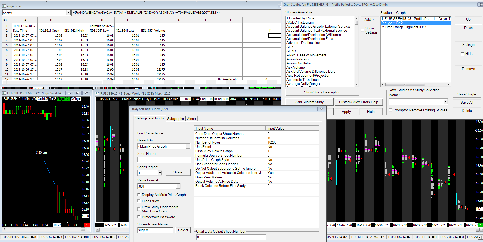 ok I don't really understand what im doing wrong, this is a example of sugar. Sugar opens 3:30 am central time. According to sierra chart