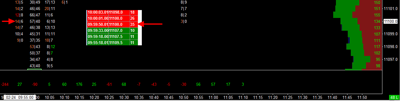 In the first two screenshots is shown a #Bars Chart and part of a T&S from today (current FDax). At 09:59:50 there was triggered a Volume of 35 with a price of 11100.0 and in the second screenshot there was triggered at 10:48:57 a Volume of 37 with a price of 11106.0. From my point of view both amounts should be seen on the #Bars (see red arrows near the #Bars) but I cannot. Why is that difference or am I wrong? Please find attached also my study settings. Many thanks. |