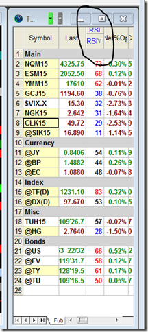 Is there a way in Sierra where I can get the RSI sortable by the instruments I follow in a tabular format (not chart)? I use it all day every day and I have to open TS to get it and TS is very heavy and slows down my computer. See image.