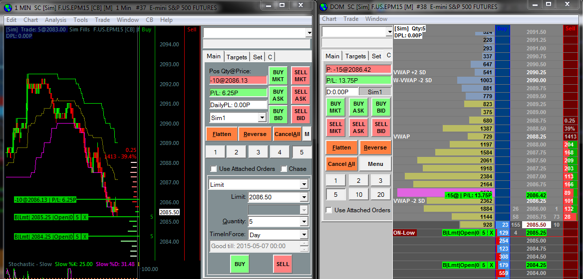 Time Zones are all consistent (CST). A couple things came to mind i thought may be potential factors; how DailyPL is calculated on orders held overnight and re-starting Sierra while a position is being held. I've been able to re-create the problem. It has to do with being in a position and then re-starting Sierra. For an experiment, I entered short (-10) contracts, Closed and restarted Sierra. When the charts opened and calculated POS in the trade windows, the Dom added an additional 5 contracts to my POS. (-15) Thus affecting the DailyPL in the Dom as well. (see attachment) at this point, I flattened from the Dom. The Dom then read (0) POS however the trade window on the 1min chart now said (+5). I then flattened from the 1min chart's trade window and it then read (0) however the Dom now said (-5). Flattened once more on the Dom and this time all read (0) finally. The DailyPL (on the Dom) however still +10pts off from the other trade windows. The charts appear to be consistent. It seems to be an issue with the Dom. I am using a number of Study/Price overlays on the Dom, if that has any bearing. |