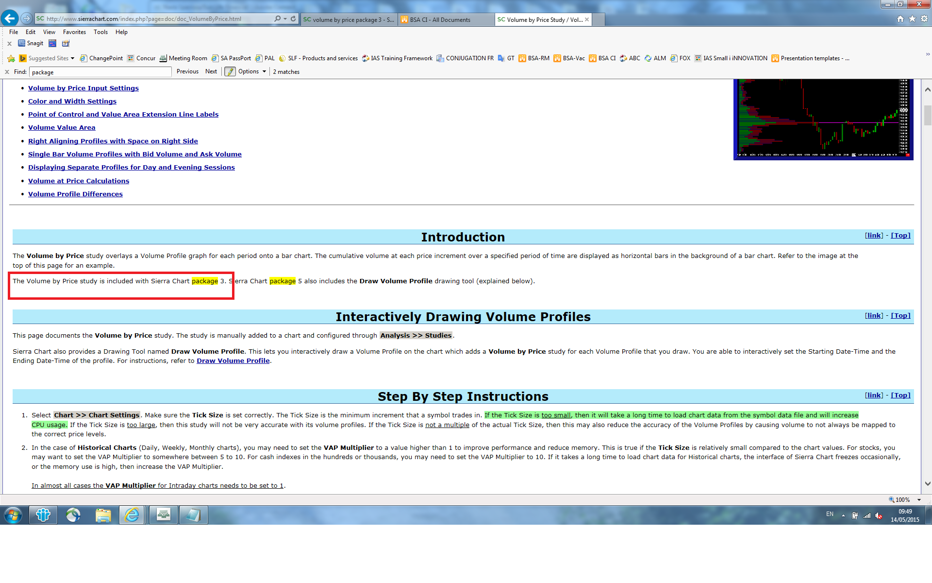 Hi My volume by price profiles are not working, the log says it is not included with my package. However, your help page states: The Volume by Price study is included with Sierra Chart package 3 (attached screenshot). Can you please tell me why it is not working? Thanks Date Time Of Last Edit: 2015-05-14 13:50:51