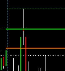 During the the evening, Horizontal Levels are added to a chart over tomorrow's date. When the market opens the next day and candles start to display, the horizontal levels shrink to a single point. |