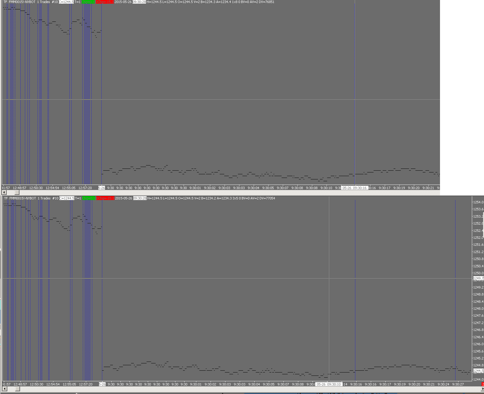This has been going on for a while. Can you tell me if its something I'm doing incorrectly? If I look at a 1 tic chart with the time grid lines (F5, adv setting 2) set to 10 seconds, the 1st period of the day is longer then 10 seconds, thus throwing off the 10 sec/minute scale when referencing another chart visually. How do I get the first line to appear at the 10 second mark? In the case of the attchment its at the 16 second mark. ty