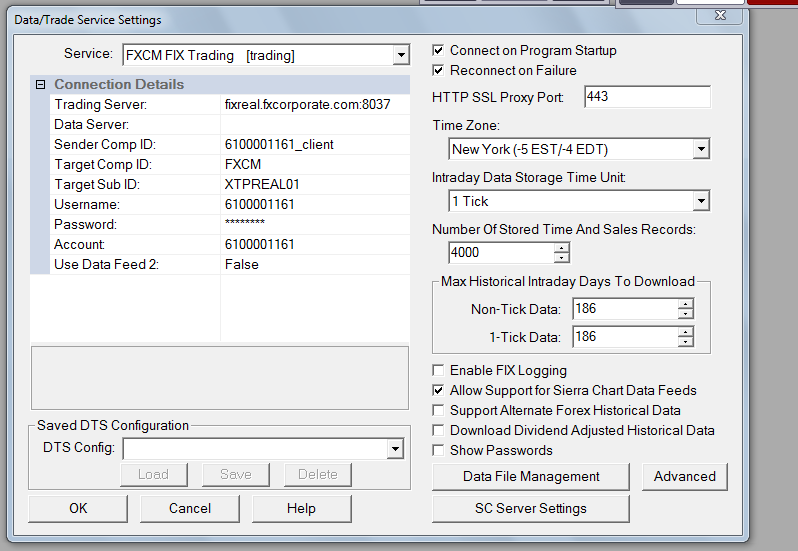Been back and forth with fxcm support to help with login. No luck thus far. Received credentials from them as shown below. SocketConnectHost=fixreal.fxcorporate.com SocketConnectPort=8037 SenderCompID=6100001161_client1 TargetCompID=FXCM TargetSubID=XTPREAL01 Message Log: FXCM FIX Trading session | Connecting to address fixreal.fxcorporate.com. Port 8037. | 2015-05-29 07:40:56 FXCM FIX Trading session socket (0) | Resolved address fixreal.fxcorporate.com to IP 204.8.241.24 | 2015-05-29 07:40:56 FXCM FIX Trading session socket (24) | Connected. | 2015-05-29 07:40:56 FXCM FIX Trading session: Sending the Logon message. | 2015-05-29 07:40:56 FXCM FIX Trading session socket (24) | Closed. No error. | 2015-05-29 07:40:56 FXCM FIX Trading session socket (24) | Shutdown and closed. | 2015-05-29 07:40:56 FXCM FIX Trading session: Socket connection was closed without any logout messages sent or received. | 2015-05-29 07:40:56 FXCM FIX Trading session: Disconnected. | 2015-05-29 07:40:56 Error connecting to Data or Trading service. For help with this issue, press the 'Send For Analysis' button on this window. | 2015-05-29 07:40:56 To prevent further connection attempts, select 'File >> Disconnect'. | 2015-05-29 07:40:56 FXCM FIX Trading: Disconnected. | 2015-05-29 07:40:56 Will reconnect to the server in 5.0 seconds. Select 'File >> Disconnect' to prevent further connection attempts. | 2015-05-29 07:40:56 FXCM FIX Trading session | Connecting to address fixreal.fxcorporate.com. Port 8037. | 2015-05-29 07:41:01 FXCM FIX Trading session socket (0) | Resolved address fixreal.fxcorporate.com to IP 204.8.241.24 | 2015-05-29 07:41:01 FXCM FIX Trading session socket (25) | Connected. | 2015-05-29 07:41:02 FXCM FIX Trading session: Sending the Logon message. | 2015-05-29 07:41:02 FXCM FIX Trading session socket (25) | Closed. No error. | 2015-05-29 07:41:02 FXCM FIX Trading session socket (25) | Shutdown and closed. | 2015-05-29 07:41:02 FXCM FIX Trading session: Socket connection was closed without any logout messages sent or received. | 2015-05-29 07:41:02 FXCM FIX Trading session: Disconnected. | 2015-05-29 07:41:02 Error connecting to Data or Trading service. For help with this issue, press the 'Send For Analysis' button on this window. | 2015-05-29 07:41:02 To prevent further connection attempts, select 'File >> Disconnect'. | 2015-05-29 07:41:02 FXCM FIX Trading: Disconnected. | 2015-05-29 07:41:02 Will reconnect to the server in 5.0 seconds. Select 'File >> Disconnect' to prevent further connection attempts. | 2015-05-29 07:41:02 FXCM FIX Trading session | Connecting to address fixreal.fxcorporate.com. Port 8037. | 2015-05-29 07:41:07 FXCM FIX Trading session socket (0) | Resolved address fixreal.fxcorporate.com to IP 204.8.241.24 | 2015-05-29 07:41:07 FXCM FIX Trading session socket (26) | Connected. | 2015-05-29 07:41:07 FXCM FIX Trading session: Sending the Logon message. | 2015-05-29 07:41:07 FXCM FIX Trading session socket (26) | Closed. No error. | 2015-05-29 07:41:07 FXCM FIX Trading session socket (26) | Shutdown and closed. | 2015-05-29 07:41:07 FXCM FIX Trading session: Socket connection was closed without any logout messages sent or received. | 2015-05-29 07:41:07 FXCM FIX Trading session: Disconnected. | 2015-05-29 07:41:07 Error connecting to Data or Trading service. For help with this issue, press the 'Send For Analysis' button on this window. | 2015-05-29 07:41:07 To prevent further connection attempts, select 'File >> Disconnect'. | 2015-05-29 07:41:07 FXCM FIX Trading: Disconnected. | 2015-05-29 07:41:07 Will reconnect to the server in 5.0 seconds. Select 'File >> Disconnect' to prevent further connection attempts. | 2015-05-29 07:41:07 FXCM FIX Trading session | Connecting to address fixreal.fxcorporate.com. Port 8037. | 2015-05-29 07:41:12 FXCM FIX Trading session socket (0) | Resolved address fixreal.fxcorporate.com to IP 204.8.241.24 | 2015-05-29 07:41:12 FXCM FIX Trading session socket (27) | Connected. | 2015-05-29 07:41:12 FXCM FIX Trading session: Sending the Logon message. | 2015-05-29 07:41:13 FXCM FIX Trading session socket (27) | Closed. No error. | 2015-05-29 07:41:13 FXCM FIX Trading session socket (27) | Shutdown and closed. | 2015-05-29 07:41:13 FXCM FIX Trading session: Socket connection was closed without any logout messages sent or received. | 2015-05-29 07:41:13 FXCM FIX Trading session: Disconnected. | 2015-05-29 07:41:13 Error connecting to Data or Trading service. For help with this issue, press the 'Send For Analysis' button on this window. | 2015-05-29 07:41:13 To prevent further connection attempts, select 'File >> Disconnect'. | 2015-05-29 07:41:13 FXCM FIX Trading: Disconnected. | 2015-05-29 07:41:13 Will reconnect to the server in 5.0 seconds. Select 'File >> Disconnect' to prevent further connection attempts. | 2015-05-29 07:41:13 FXCM FIX Trading session | Connecting to address fixreal.fxcorporate.com. Port 8037. | 2015-05-29 07:41:18 FXCM FIX Trading session socket (0) | Resolved address fixreal.fxcorporate.com to IP 204.8.241.24 | 2015-05-29 07:41:18 FXCM FIX Trading session socket (28) | Connected. | 2015-05-29 07:41:18 FXCM FIX Trading session: Sending the Logon message. | 2015-05-29 07:41:18 FXCM FIX Trading session socket (28) | Closed. No error. | 2015-05-29 07:41:18 FXCM FIX Trading session socket (28) | Shutdown and closed. | 2015-05-29 07:41:18 FXCM FIX Trading session: Socket connection was closed without any logout messages sent or received. | 2015-05-29 07:41:18 FXCM FIX Trading session: Disconnected. | 2015-05-29 07:41:18 Error connecting to Data or Trading service. For help with this issue, press the 'Send For Analysis' button on this window. | 2015-05-29 07:41:18 To prevent further connection attempts, select 'File >> Disconnect'. | 2015-05-29 07:41:18 FXCM FIX Trading: Disconnected. | 2015-05-29 07:41:18 Will reconnect to the server in 5.0 seconds. Select 'File >> Disconnect' to prevent further connection attempts. | 2015-05-29 07:41: