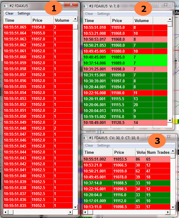 Many tkanks for the new combined filter. The attached screenshot is a good example. I am using three different T&S 1. Without any filter 2. With the Volume Filter >=7 3. With the new combined Filter: a. Same Time/ Type b. Volume >=30 and Trades >=10 The timestamp 10:55:51.xxx gives back the power of the new combined filter. No 3 is showing you a block trade (86/ 65). The ΓΈ Trade = 1.323. No 1 is not a big help in that moment - says nothing No 2 gives back only one time a Volume of 8 - says nothing In that case the combined filter was the only helping hand. |