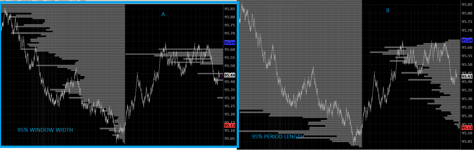 VbP: I like a chart that shows the last few hours of price action using a range bar. Therefore I use VbP with a Max width type "window width @ 95%". The issue is when the previous session is in view... At these times a Max width type "Period Length @ 95%" is much better. It would be very good if there another setting like this: "Use period length but always fit in window". I think that many users that like range bars would agree with ?? See picture if you need to understand what I'm looking at. |