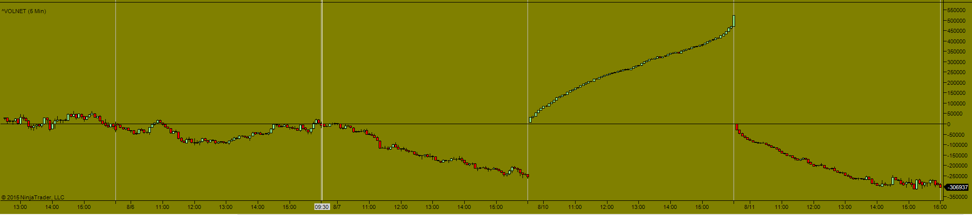 I have been watching the NYSE net volume (advancing - declining) from Sierra Charts and IQfeed. Please see attached photos from each for the last 4+ trading days, NVOL-NYSE for Sierra charts and VOLNET for IQfeed. In reviewing both charts the give very different results. 1. Values IQfeed VOLNET photo: 8/10 the extreme high area is 550K 8/11 the extreme low area is -307K Sierra Charts NVOL-NYSE photo: 8/10 the extreme high area is 2.5M 8/11 the extreme low area is >-3.6M 2. Data plotting The charting is much more comparable than the values. Is there another NYSE net volume source to compare too? At this point I welcome some feedback. Thanks |