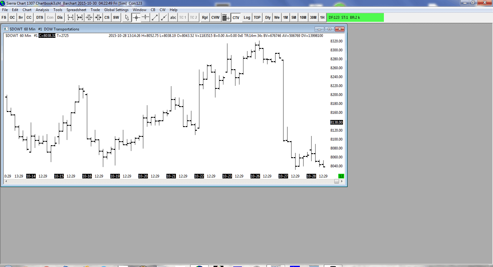 As of 4 am Friday 10/30 my intraday barchart data still ends at 1 pm eastern on 10/28 Software version: 1307 | 2015-10-30 04:20:18 Uses Old Spreadsheets | 2015-10-30 04:20:18 Usage end date: 2016-03-28 | 2015-10-30 04:20:18 Enabled for: Advanced Features. | 2015-10-30 04:20:18 Enabled for: Advanced Features 2. | 2015-10-30 04:20:18 Enabled for: Sierra Chart Historical Data Service. | 2015-10-30 04:20:18 Allow Support for Sierra Chart Data Feeds is enabled. | 2015-10-30 04:20:18 Current selected Data/Trading service: Barchart | 2015-10-30 04:20:18 Chart Update Interval: 500 | 2015-10-30 04:20:18 Time Zone: -04:00:00 (EST-05EDT+01,M3.2.0/02:00,M11.1.0/02:00) | 2015-10-30 04:20:18 2015-10-30 04:20:18 Local computer time | 2015-10-30 04:20:18 2015-10-30 08:20:18 Local computer time in UTC | 2015-10-30 04:20:18 2015-10-30 04:20:18 Local computer time in SC Time Zone | 2015-10-30 04:20:18 2015-10-30 08:20:18 Server time in UTC | 2015-10-30 04:20:18 Local computer UTC time and Server UTC time difference: 2 seconds. | 2015-10-30 04:20:18 Program path: C:\SierraChart\ | 2015-10-30 04:20:18 Data Files path: C:\SierraChart\Data\ | 2015-10-30 04:20:18 OS Version Number: 6.1 | 2015-10-30 04:20:18 Locale Information: C | 2015-10-30 04:20:18 Checking for new symbol settings for ddf | 2015-10-30 04:20:18 Symbol settings are up-to-date for ddf | 2015-10-30 04:20:23 Barchart | Verifying status of username. | 2015-10-30 04:20:23 Barchart | Requesting user settings from http://www.ddfplus.com for SCMARCIA | 2015-10-30 04:20:23 Barchart | User settings received. | 2015-10-30 04:20:24 Barchart | Authorized exchanges: AMEX,NYSE,NTDS,OTCBB,FUND,INDEX,AMEXBA,NYSEBA,NTDSBA,OTCBBBA,INDEX-DOW,INDEX-NQ,INDEX-NY,INDEX-SP | 2015-10-30 04:20:24 Barchart | Connecting to server qs-us-e-01.aws.barchart.com:7500 | 2015-10-30 04:20:24 Socket (0) | Resolved address qs-us-e-01.aws.barchart.com to IP 50.16.236.240 | 2015-10-30 04:20:24 Socket (5) | Connected. | 2015-10-30 04:20:24 Barchart | Waiting for initial message from server. | 2015-10-30 04:20:24 Barchart | Sending the LOGIN command. | 2015-10-30 04:20:24 Barchart | Sending the VERSION command. | 2015-10-30 04:20:24 Barchart | Connected to data server. | 2015-10-30 04:20:24 Barchart | Info Message: + Version set to 3. | 2015-10-30 04:20:24 Barchart | Starting real-time market data updates for: $DOWT. ID: 1 | 2015-10-30 04:20:48 Barchart | Subscribe to symbol $DOWT. Barchart Symbol: $DOWT | 2015-10-30 04:20:48 Intraday data recording state for symbol $DOWT is set to download 'Pending'. | 2015-10-30 04:20:48 HD Request # 2 | Downloading Intraday chart data for $DOWT to the file $DOWT.scid. Service: ddf | 2015-10-30 04:20:48 HD Request # 2 | Download start Date-Time: 2015-10-29 16:32:36.000 | 2015-10-30 04:20:48 HD Request # 2 | Using user Barchart Historical data account. | 2015-10-30 04:20:48 HD Request # 2 | Requesting historical Intraday Tick data for $DOWT starting at 2015-10-29 16:32:36 (Exchange time). | 2015-10-30 04:20:48 The data feed was lost. There was no activity for at least 20.0 seconds. | 2015-10-30 04:20:48 Connection to the external service has been lost. | 2015-10-30 04:20:48 Barchart | Sending the LOGOFF command. | 2015-10-30 04:20:48 Barchart | Reset socket. | 2015-10-30 04:20:48 Socket (5) | Shutdown and closed. | 2015-10-30 04:20:48 Barchart | Disconnected. | 2015-10-30 04:20:48 Will reconnect to the server in 5.0 seconds. Select 'File >> Disconnect' to prevent further connection attempts. | 2015-10-30 04:20:48 HD Request # 2 | Receiving Intraday data for $DOWT starting at 2015-10-29 16:32:36 | 2015-10-30 04:20:48 HD Request # 2 | Timestamp of first Intraday data file record written: 2015-10-29 16:32:36 | 2015-10-30 04:20:48 HD Request # 2 | Requesting historical Intraday Tick data for $DOWT starting at 2015-10-30 00:00:00 (Exchange time). | 2015-10-30 04:20:48 HD Request # 2 | Received 1 record from 2015-10-29 16:32:36 to 2015-10-29 16:32:36 (0.0 seconds) and wrote 1 record for $DOWT | 2015-10-30 04:20:49 HD Request # 2 | Intraday download COMPLETE for $DOWT. Completion time: 0s. Unique request ID: 1 | 2015-10-30 04:20:49 Removed historical data download ID 1 | 2015-10-30 04:20:49 Barchart | Verifying status of username. | 2015-10-30 04:20:53 Barchart | Requesting user settings from http://www.ddfplus.com for SCMARCIA | 2015-10-30 04:20:53 Barchart | User settings received. | 2015-10-30 04:20:53 Barchart | Authorized exchanges: AMEX,NYSE,NTDS,OTCBB,FUND,INDEX,AMEXBA,NYSEBA,NTDSBA,OTCBBBA,INDEX-DOW,INDEX-NQ,INDEX-NY,INDEX-SP | 2015-10-30 04:20:53 Barchart | Connecting to server qs-us-e-01.aws.barchart.com:7500 | 2015-10-30 04:20:53 Socket (0) | Resolved address qs-us-e-01.aws.barchart.com to IP 50.16.236.240 | 2015-10-30 04:20:53 Socket (7) | Connected. | 2015-10-30 04:20:54 Barchart | Waiting for initial message from server. | 2015-10-30 04:20:54 Barchart | Sending the LOGIN command. | 2015-10-30 04:20:54 Barchart | Sending the VERSION command. | 2015-10-30 04:20:54 Barchart | Connected to data server. | 2015-10-30 04:20:54 Barchart | Info Message: + Version set to 3. | 2015-10-30 04:20:54 Barchart | Starting real-time market data updates for: $DOWT. ID: 1 | 2015-10-30 04:20:54 Barchart | Subscribe to symbol $DOWT. Barchart Symbol: $DOWT | 2015-10-30 04:20:54 Intraday data recording state for symbol $DOWT is set to download 'Pending'. | 2015-10-30 04:20:56 HD Request # 3 | Downloading Intraday chart data for $DOWT to the file $DOWT.scid. Service: ddf | 2015-10-30 04:20:56 HD Request # 3 | Download start Date-Time: 2015-10-29 16:32:36.000 | 2015-10-30 04:20:56 HD Request # 3 | Using user Barchart Historical data account. | 2015-10-30 04:20:56 HD Request # 3 | Requesting historical Intraday Tick data for $DOWT starting at 2015-10-29 16:32:36 (Exchange time). | 2015-10-30 04:20:56 HD Request # 3 | Receiving Intraday data for $DOWT starting at 2015-10-29 16:32:36 | 2015-10-30 04:20:56 HD Request # 3 | Timestamp of first Intraday data file record written