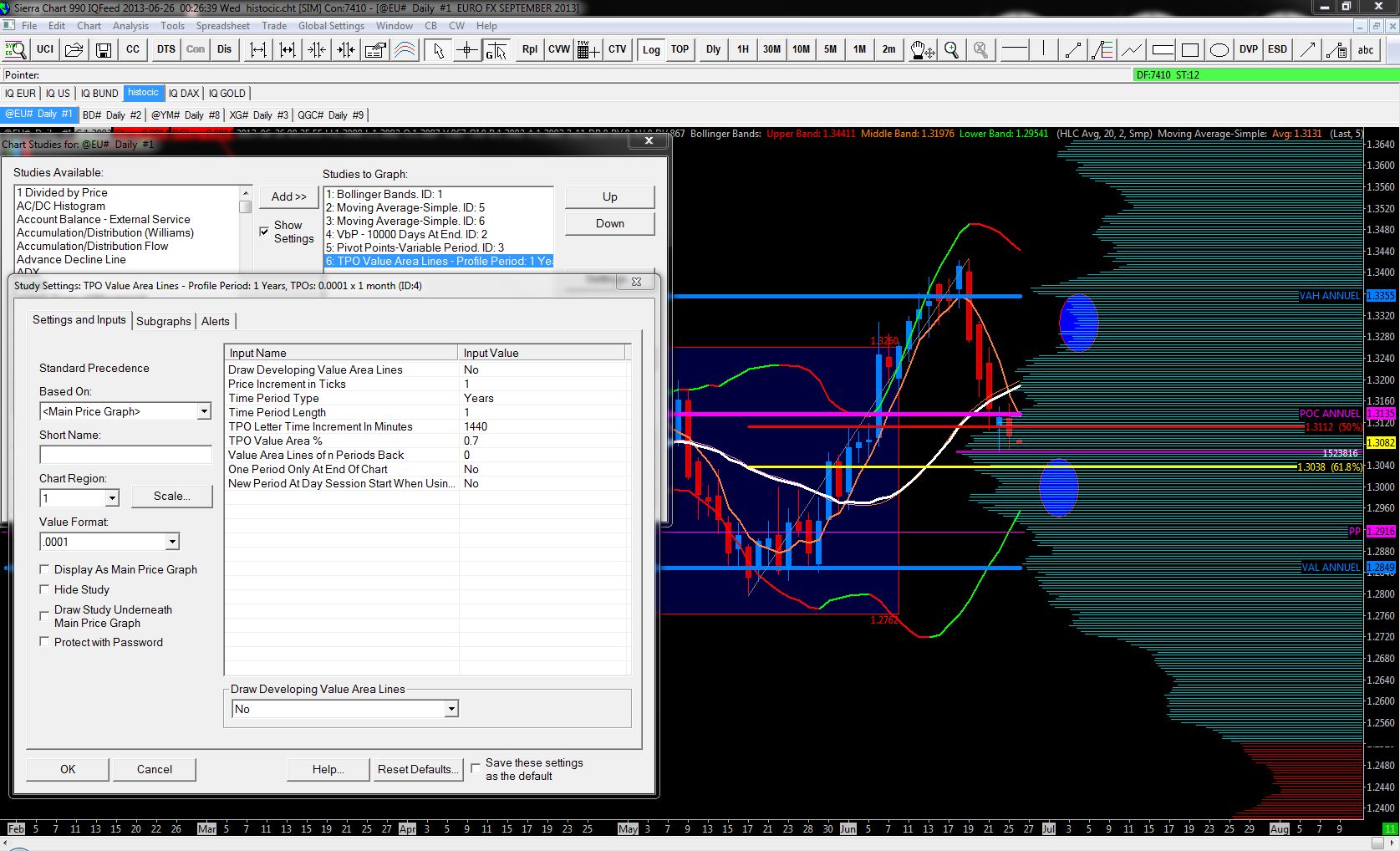 Hello, I don't understand, on my market profile chart, i haven't the same values than TPO values areas lines (see pictures) it's the same period (1 year) MP start 01-01-2013 TPO 1 year and on the grapg, it's start 2013 Thanks |