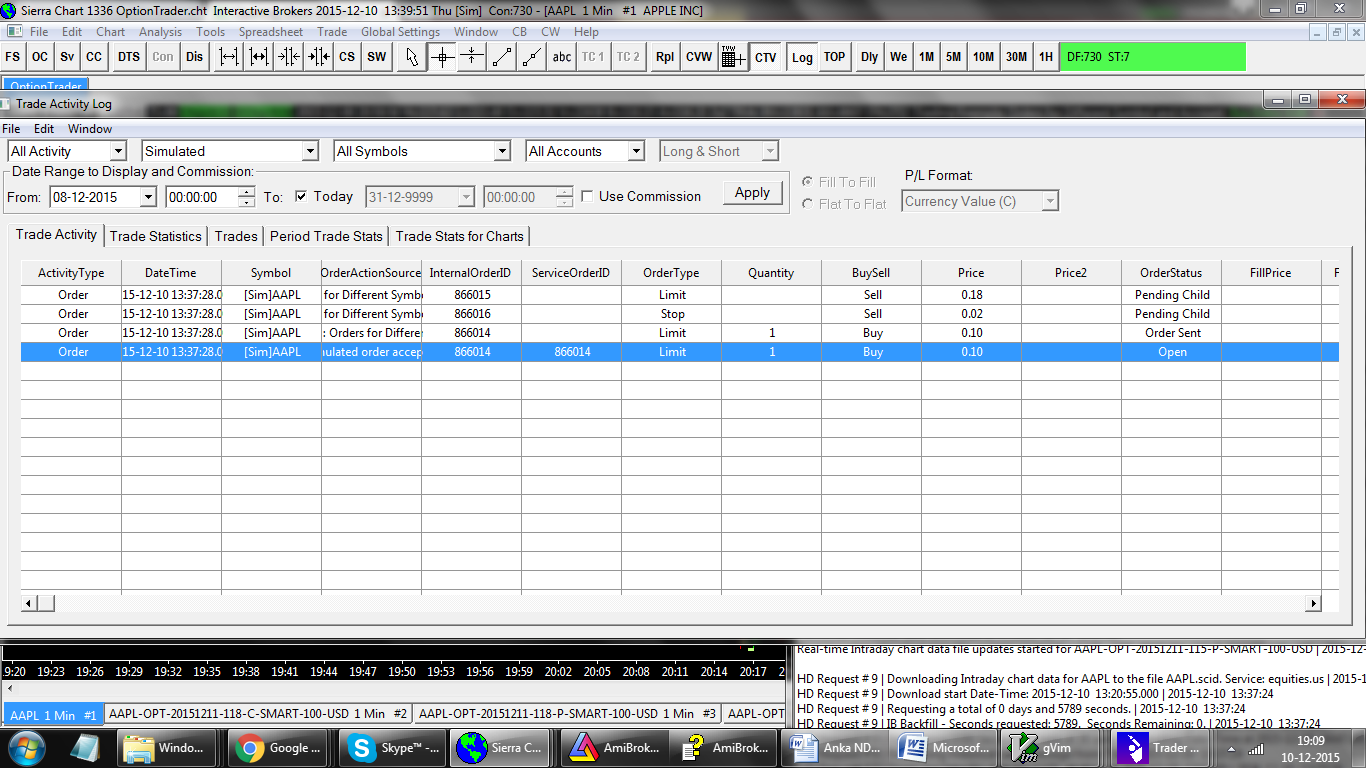 Did you test it Trade Simulation Mode? >> Yes However, if you are getting the same result where the order is submitted using the symbol of the chart, then really this is impossible unless you are running an older version of Sierra Chart. Confirm the version of Sierra Chart you are running. >> Am working with build 1336 Screenshot of the Trade Activity log enclosed |