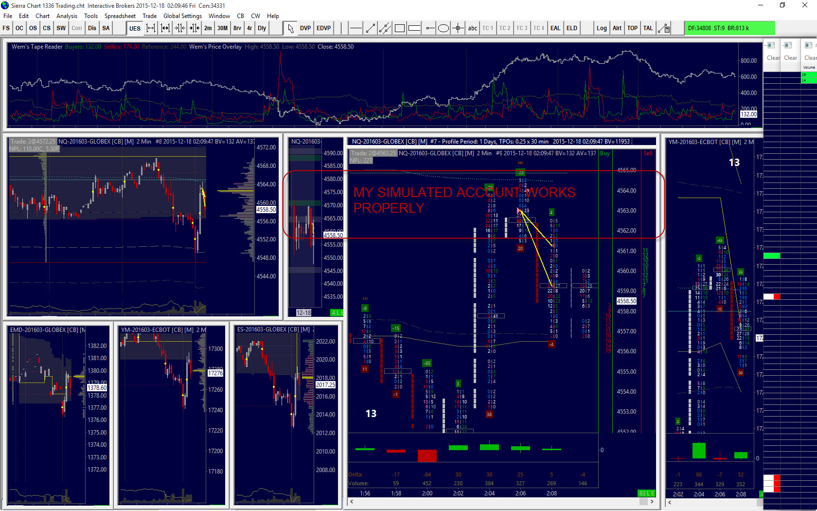 Yesterday I did two trades, the problems are still there. This morning I tried do the trade (one trade with two OCO contracts) on my simulated account and everything worked perfect, same, as I can see on my sim Sierra account at the time of backtesting strategies. Is not the problem with my IB account? I mean, my account No:x has two subacconts No:X.Y, and No:X.Z. My simulated account has only one No:X. So, if I ask IB to cancel my subacconts, then problem could be resolved. What do you think? |