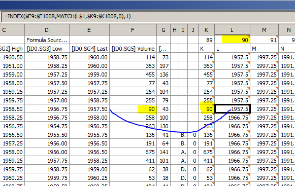 In the modified test spreadsheet using GETCORRESPONDINGMATCH, with an ascending ordered list in column K, when changing the formula in K1, the calculations take about 2 seconds, vs 1 second for the scwbf test spreadsheet, (using INDEX/MATCH). This is a marked improvement. However: 1) If you change the formula in K3, it takes about 90 seconds to recalculate the sheet, vs 1 second for the scwbf spreadsheet. If you open the test spreadsheet with an unsorted column K, it takes the same 90 seconds. 2) If you change K3 from =ROW(), which produces an ascending ordered list, to =F3, which produces an unsorted list, GETCORRESPONDINGMATCH returns the matching value one row above the originating value's row, and it also does not repeat the value in rows above, until the next matching value or until the current row 3. See pics. |
