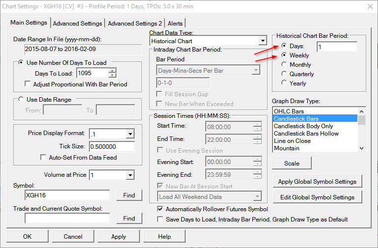 Hi, In the window "Chart Settings", when I try to change the "Chart Data Type" in "Historical Chart" and I want to choose weekly, monthly, quarterly or annually. The "Days" option is always checked. I'm with IQFeed and Sierra Chart Version 1366. What is the problem ? See screenshot attahed. Thanks . Date Time Of Last Edit: 2016-02-09 12:55:32