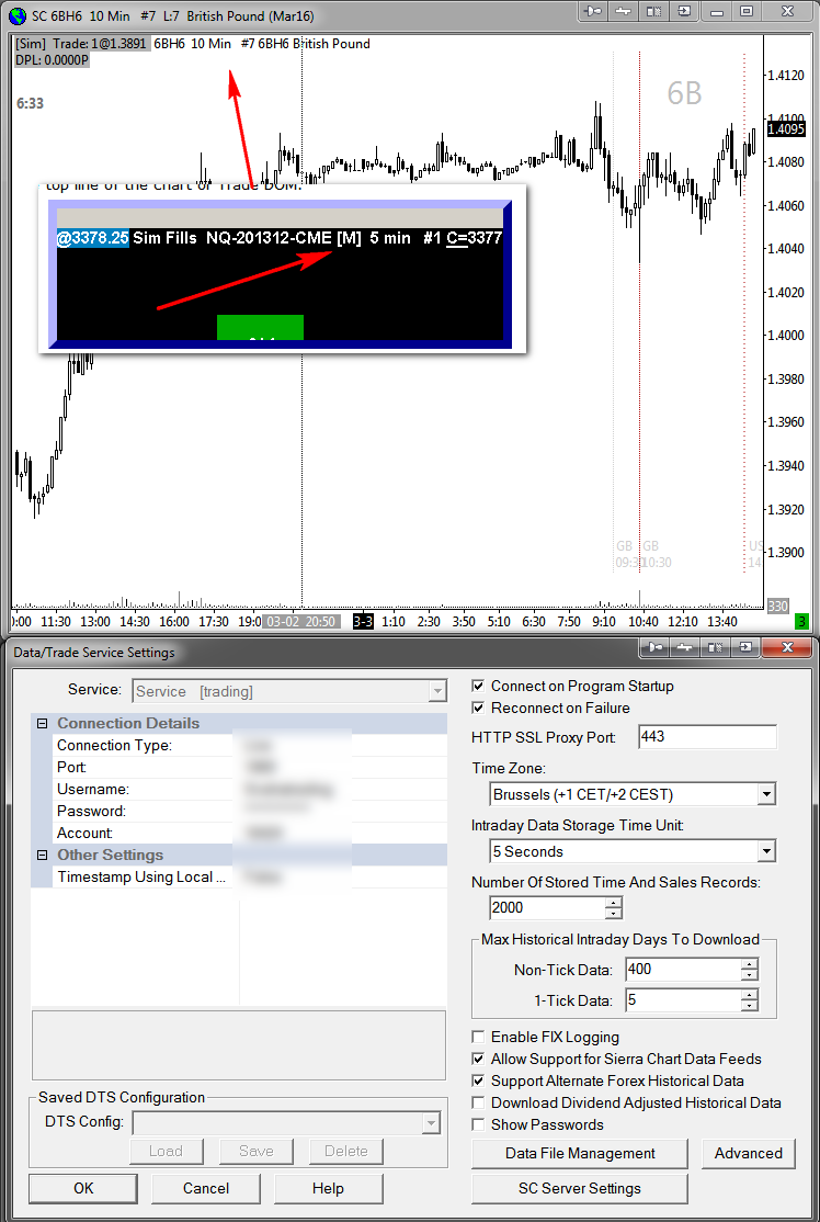 Dear Support Team, having a Sierra Chart account and having the Sierra Chart Real-Time and Historical Exchange Data Feed activated I experience a lot of lost connections. On evaluating I realized that probably the Sierra Chart Real-Time and Historical Exchange Data Feed does not arrive in this particular Sierra Chart installation provided by TransAct. The 2 indications are ongoing lost connections and the missing [M] in the chart header. "Allow Support for Sierra Chart Data Feeds" is enabled, disconnecting and reconnecting does not bring up any indication for beeing supported by the Sierra Chart data feed. Connection Type is "Live", Port 1869 is used, Timestamp Using Local Computer Clock is set to "False". Please refer to the attached screenshot of chart and Data/Trade Service settings. What am I missing? Any suggestion to solve the problem? Thank you very much, Best, Chris |