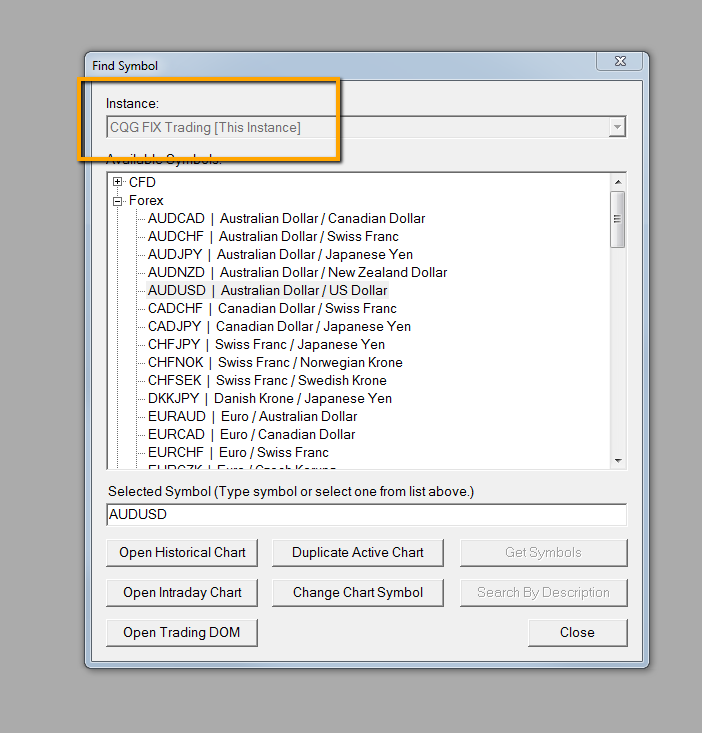 I am currently using CQG feed as my main trading data feed, but I´m also trying to use a different chart with SC prop FX data feed for FX. The issue is that when I open said chart (FX, EUR/USD, for example) the chart does not load. I´ve looked at the "find symbol" window and it doesn´t allow to change the data feed source towards SC FX (it is not "illuminated" and shows only CQG FIX Trading `This instance]). Is there any way to allow this feature? Thanks, |