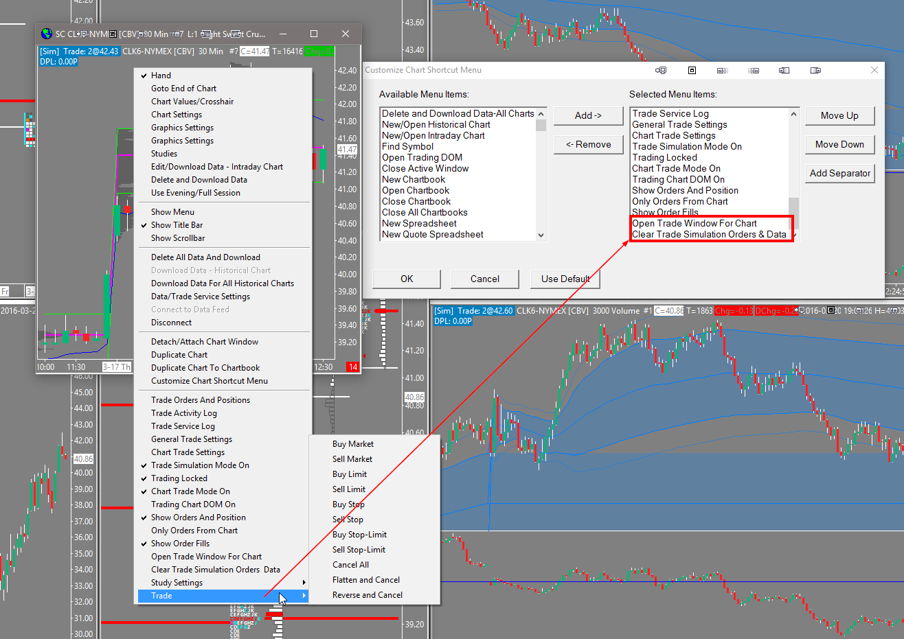 im not sure whats going on here but the chart shortcut menu is displaying items in the incorrect order. also its not even displaying some things. as you can see in the image my study settings shortcut is at the bottom of my list but i want it to be in the top section as noted in the customize chart shortcut menu. also the trade menu i have highlighted in the picture doesnt even show up in the customize chart shortcut menu to move around.