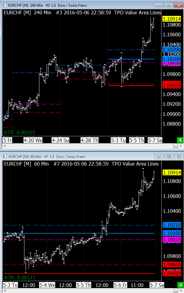Hello, please help me with the following. It seems I can't find the reason for this problem. Attached you will find a file that shows 240m and 60m charts where indicator templates are the same. However if you look for example upper blue line which should be last weeks VAH, 240m shows different value compared to 60m. I don't understand why. Please advise, thank you! |