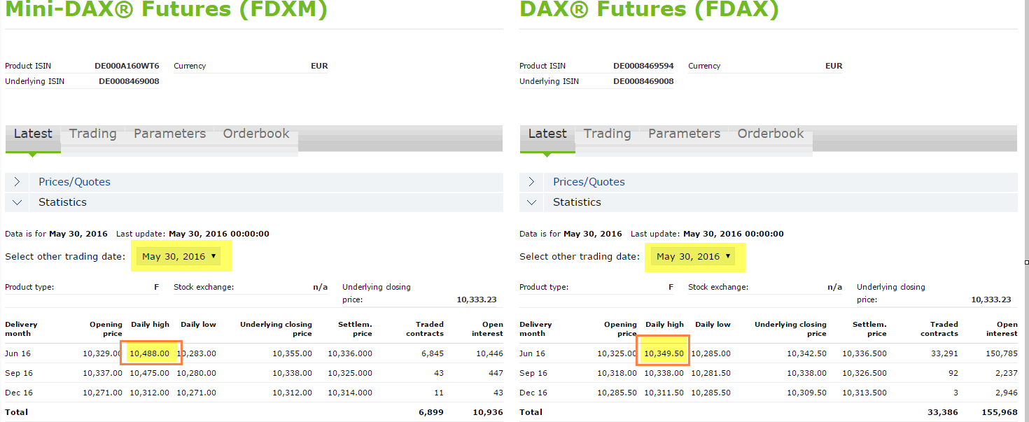 Just as a feedback - the Sierra Chart realtime data feed was completely correct. I veryfied it with the official EUREX datastatistics - please refer to the screenshot. Probably somebody was happy to move the market... Thank you for your fast response and checking - and sorry for the false alarm. Best, Chris Date Time Of Last Edit: 2016-06-01 17:58:50