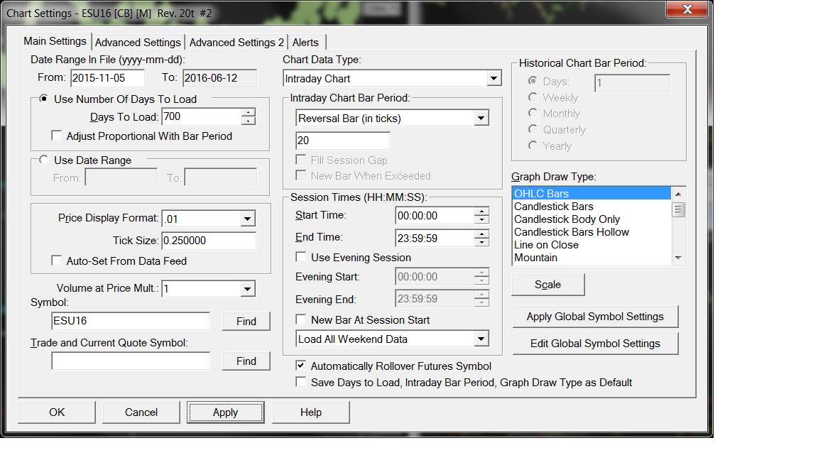 Hi, I am a subscriber of SC real-time data feed. I encounter a problem related to my intraday chart. Please see the attached image. Even though I try to set the "from" field to an earlier date, such as 2014-10-1, it is always set to 2015-11-05 by itself. Is the real-time data feed supporting up to 3-years tick data at least? This is for ES. Beside, to save exchange fee, I sign in using TD Ameritrade account following the instructions on your website. Thanks! |