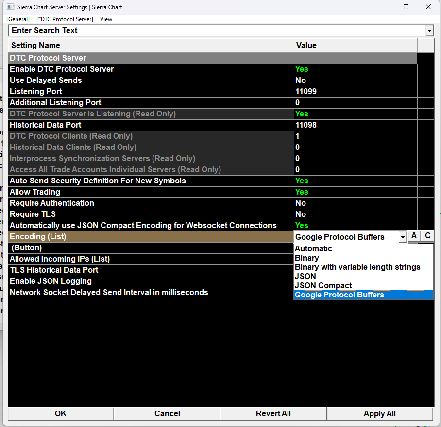 This is documented here: Data and Trading Communications (DTC) Protocol Server: Restrictions Which is really an essential page that anyone would have to refer to when using Sierra Chart as a server. That page has been there from the very beginning of the DTC protocol. This goes back probably about 7 years. And we have added it, to the market data DTC page here: Market Data Messages Although that page was originally designed to be just a general documentation page for the protocol. Sierra Chart Support - Engineering Level Your definitive source for support. Other responses are from users. Try to keep your questions brief and to the point. Be aware of support policy: https://www.sierrachart.com/index.php?l=PostingInformation.php#GeneralInformation For the most reliable, advanced, and zero cost futures order routing, use the Teton service: Sierra Chart Teton Futures Order Routing |