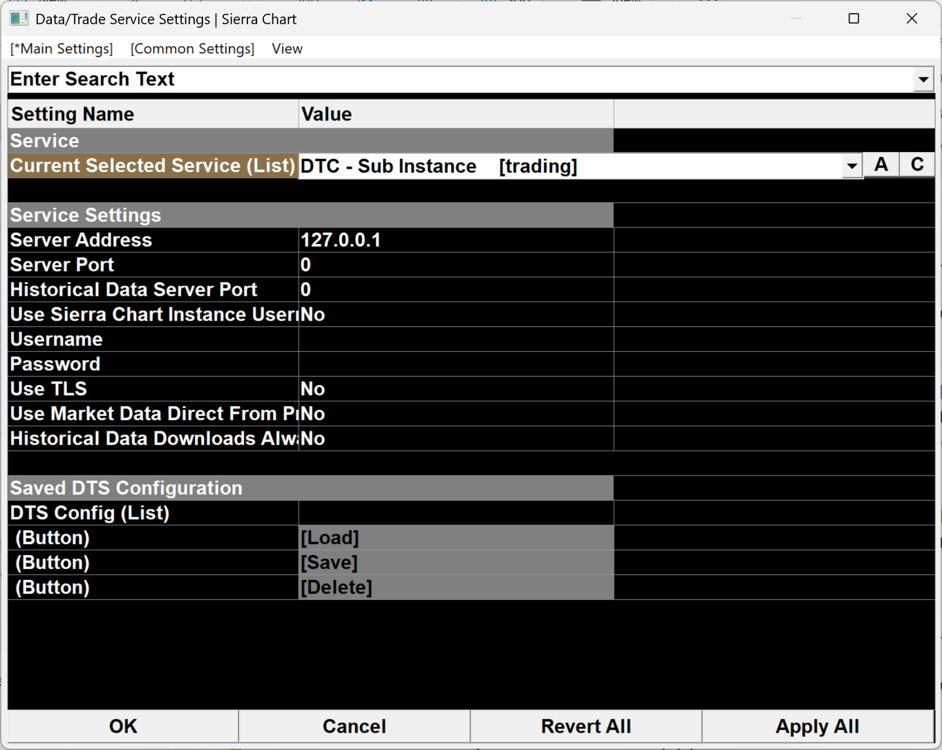 Select "Global Settings >> Sierra Chart Server Settings" and then there is a separate tab in there for "DTC Protocol Server". We think this is what you are looking for. If it is something else, then please give us additional information. We are curious why you were expecting to find this directly under the "Global Settings" window. If there is something in our documentation that is not correct, please let us know where it is so we can correct it. For the most reliable, advanced, and zero cost futures order routing, use the Teton service: Sierra Chart Teton Futures Order Routing |