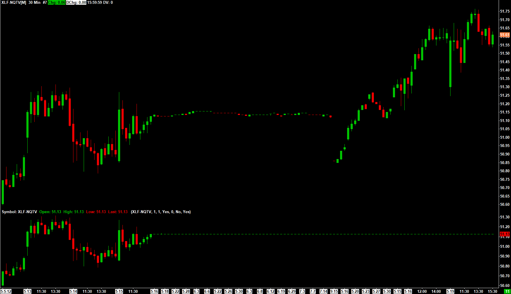 We are not seeing any issues with the data at this time. Please open an individual chart for XLK-NQTV and see if the data is showing correctly in that chart. If it is, then it should show correctly in the "Add Additional Symbol" study. If there is a problem with the data in the single chart for the symbol, then use the "Delete Data and Download" option as specified here: Data Errors or Spikes in Charts, Flat or Flat Line Graph, Compressed Graph, Errors with Date/Time Values: 2.1.2 Deleting and Re-downloading Data. (Easier and Recommended Method) If this does not correct the data, let us know. For the most reliable, advanced, and zero cost futures order routing, use the Teton service: Sierra Chart Teton Futures Order Routing |
