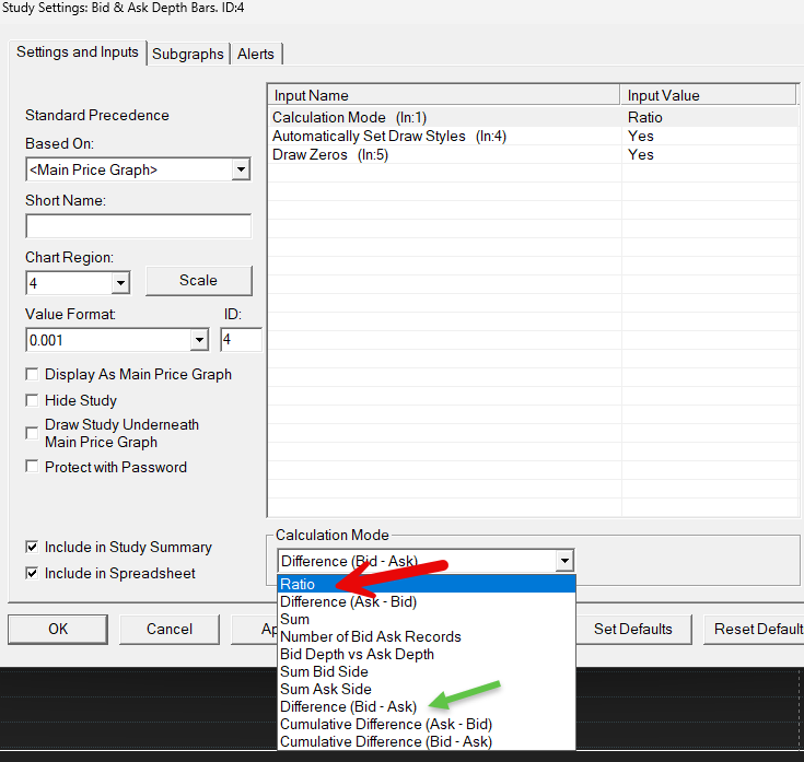 'Bid - Ask Ratio' as Calculation Method in Depth Bars