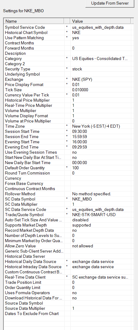 ARM_MBO is a stock I have already taken trades on. Today, its price isn't displayed normally on the right side scale of charts: for example instead of the normal $129.56, it says 129 - 59/-71. I am unable to enter trades because of it. So I go to Global settings -> Symbol Settings. Note that I am using custom symbols. At first, I see "Price Display format" is written in that weird 129 -59/-71 formatting. I manually edit it to something normal: 0.01. Sierra Chart says the default setting here would be 0.001, which isn't correct. The default should be 1 penny always. But anyway, I enforce my manual 0.01. I reconnect. After that, I see nothing particularly wrong with the custom settings for this stock anymore. The problem keeps happening. The same thing started happening with NKE_MBO today as well, a stock that has always been displaying its price normally. This randomly happens on some days, on random stocks. I have no way of predicting this. I always update the symbol settings of course, but this is not enough. Here are two screenshots of the settings for ARM_MBO and NKE_MBO. Note: when I took these screenshots, NKE was displaying its price properly again thanks to my manual modifications. ARM was not, despite having exactly the same settings. I figured after half an hour of tinkering, that I had to use the default "Price Display Format" of 0.001 on ARM_MBO so it works again. Now its price is showing as 129.620 on charts. I can deal with it, but I'm sure it'll be grounds for this problem to repeat itself some day. I can deal with it after my trading sessions, but the fact that it can happen for no apparent reason out of the blue is weird. Date Time Of Last Edit: 2025-05-22 14:51:42