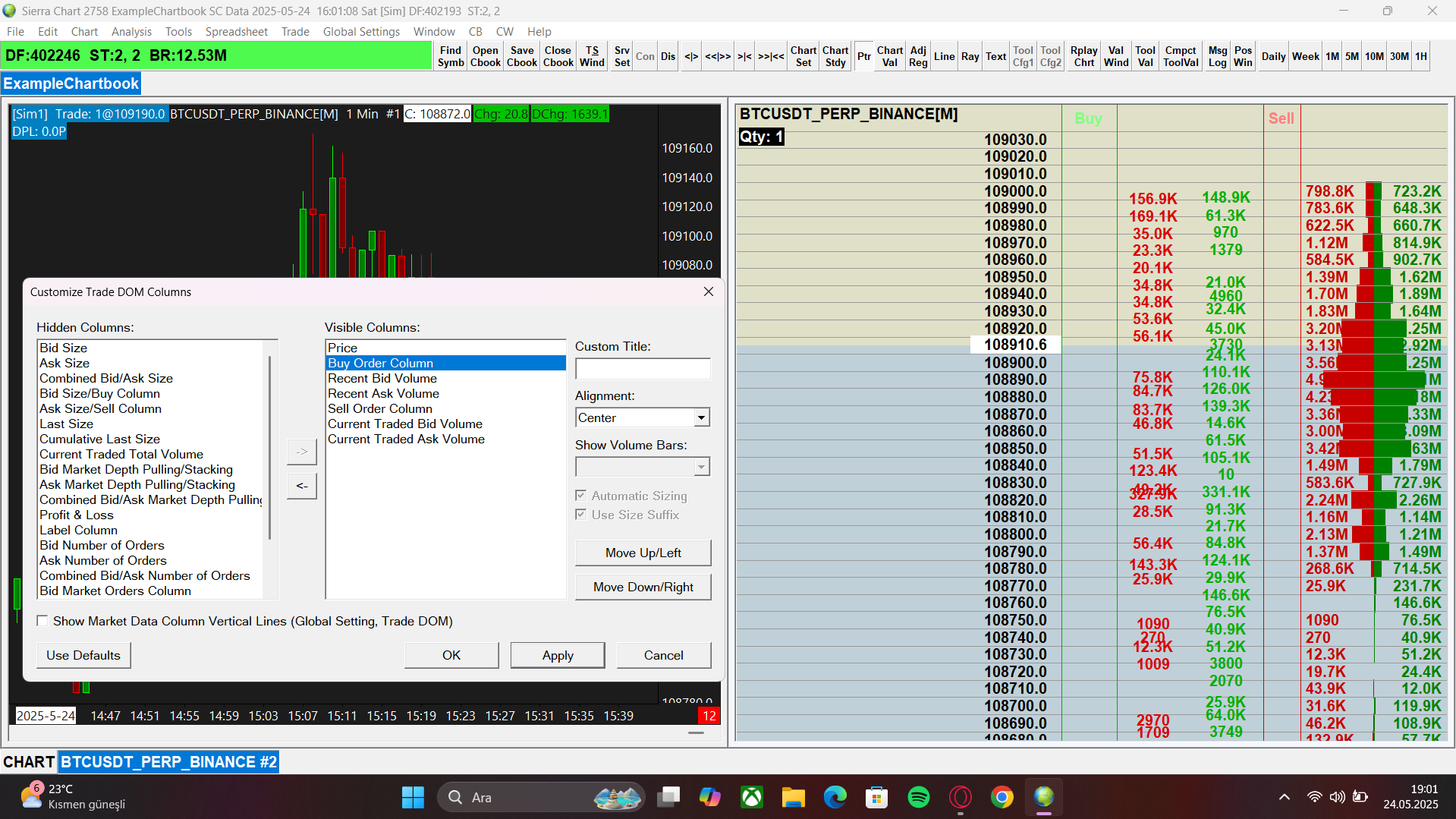 I created my account and got my trial for some days but when i'm in the Sierra Chart app BTCUSDT PERP BINANCE CHART DOM doesn't show me the resting Buy and Sell orders in the market . I am sending the customized DOM template screenshot. please i need help thank you so much |