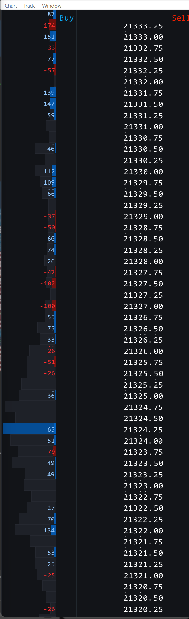I have attached a photo of a DOM I found in an old chartbook. I'm wondering what the data on the far left is called. Is this pulling and stacking? If it's delta - I see that some bars have a smaller delta - but the bar is filled all the way to the left. What does this signify? |