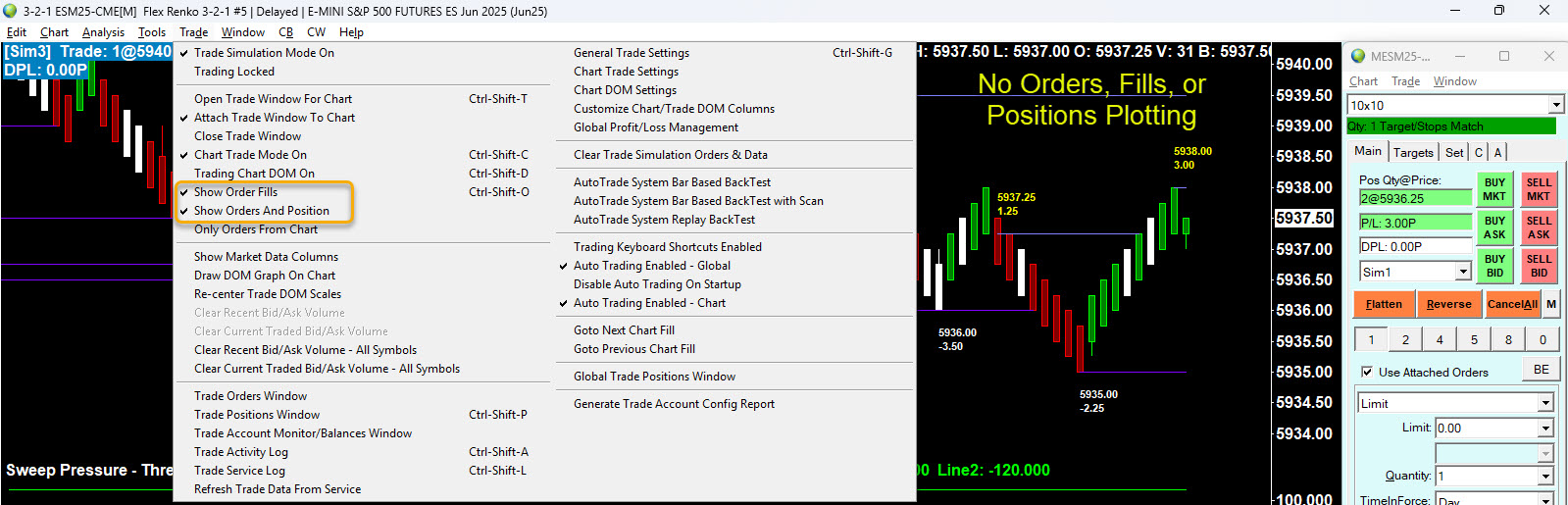 Please inform me how to have trades plotted on the chart. The ability to plot trades seems inconsistent in this instance of Sierra Chart. |