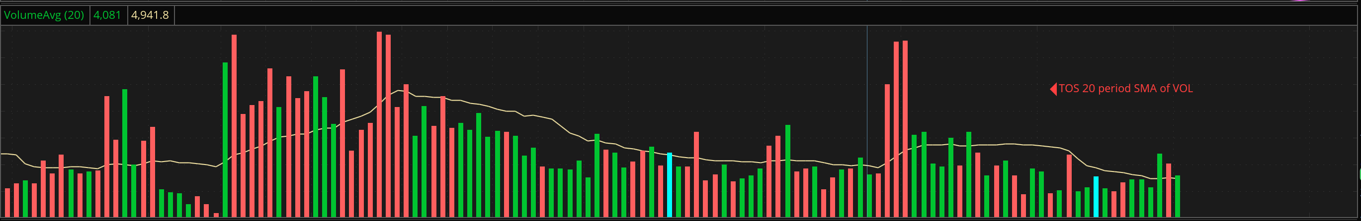 It appears that my SMA of volume on SC is incorrectly very high. I attached a pic of a 2min SC chart (May 29th) of /NMQ with a 20 period SMA and a 2min TOS chart with a 20 period SMA. I get what appears to be overly-elevated SMA's on other time frames and when using other period sizes as well. EXT hours volume not used. I don't understand why I am getting two very different lines? Thx Date Time Of Last Edit: 2025-05-29 17:42:01