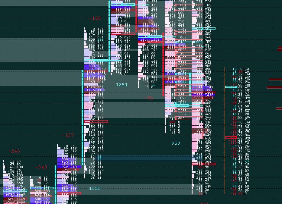 Are you referring to the values of -35, -260, 175, 91, 125, etc.? If so, then there is not a way to move them "outside the candle". If you are referring to the numbers bars data, such as "0 23", "16 33" (as seen in the top two prices in the leftmost bar) and you want to have those separate from the profile, then you need to use 2 columns. One setup for the profile and one for the numbers. Refer to the following: Numbers Bars: Column # Numbers Bars Text For the most reliable, advanced, and zero cost futures order routing, use the Teton service: Sierra Chart Teton Futures Order Routing |
