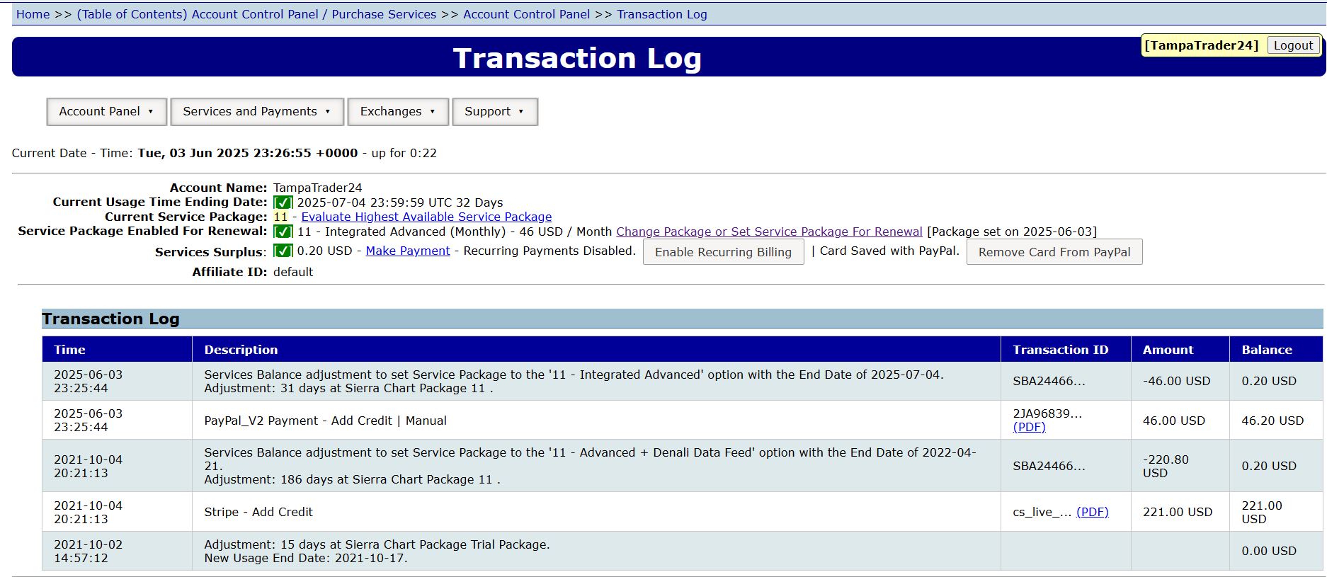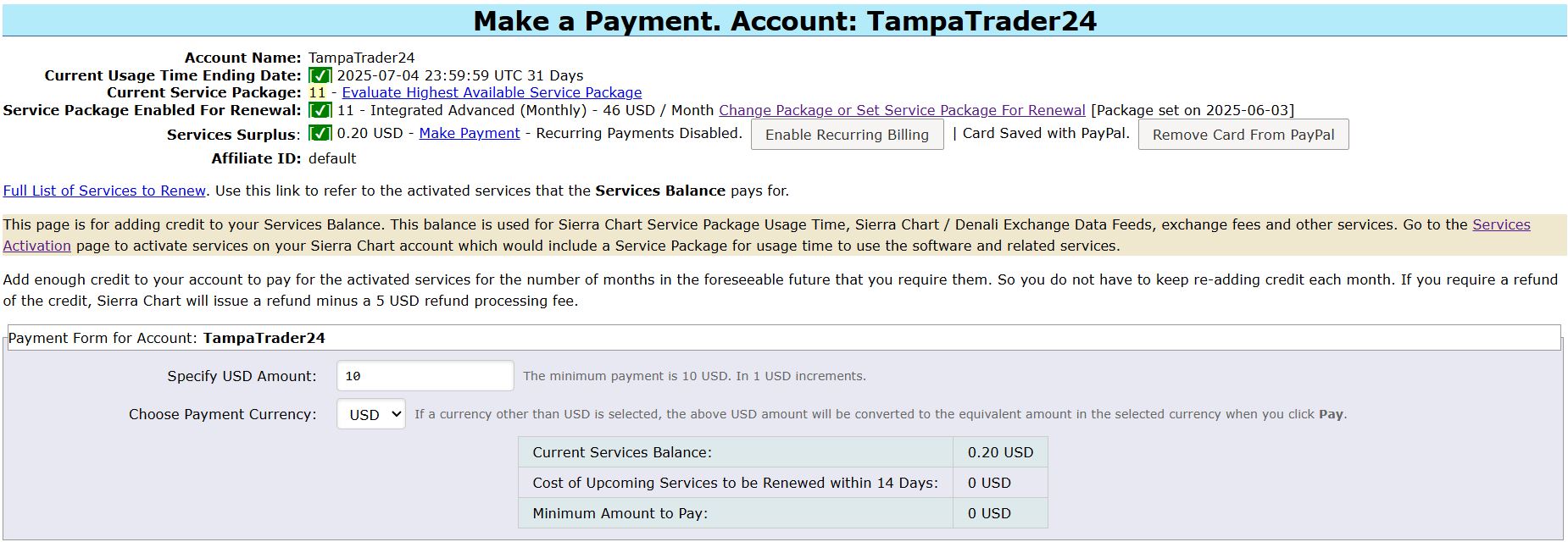 Hi John! It looks like my Service Package 11 is active and confirmed, right? Please see screenshot I should be fully approved with Stage 5 today and will fund that account with the $100 immediately. from Stage 5: Once the application is approved and account is funded we will get your Stage 5 account linked to your Sierra Chart user on their Teton order routing. You’ll then update your Data/Trade Service Settings to the info we give you and can then connect. It’s a very easy setup and we can help out if you run into any issues. My remaining question right now to you is, how exactly do I sign up for the Exchange$3/mo CME Non_Professional Top-of-Book? I can see it listed with all the other exchanges, but I cannot find out how to actually select and pay for it. Thank you! |