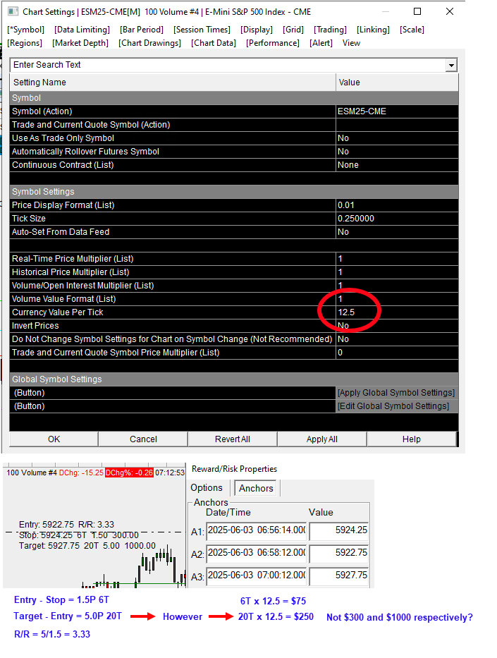The Risk/Reward tool takes into account the quantity that is set for that chart. In this case, you must have a quantity of 4 setup.