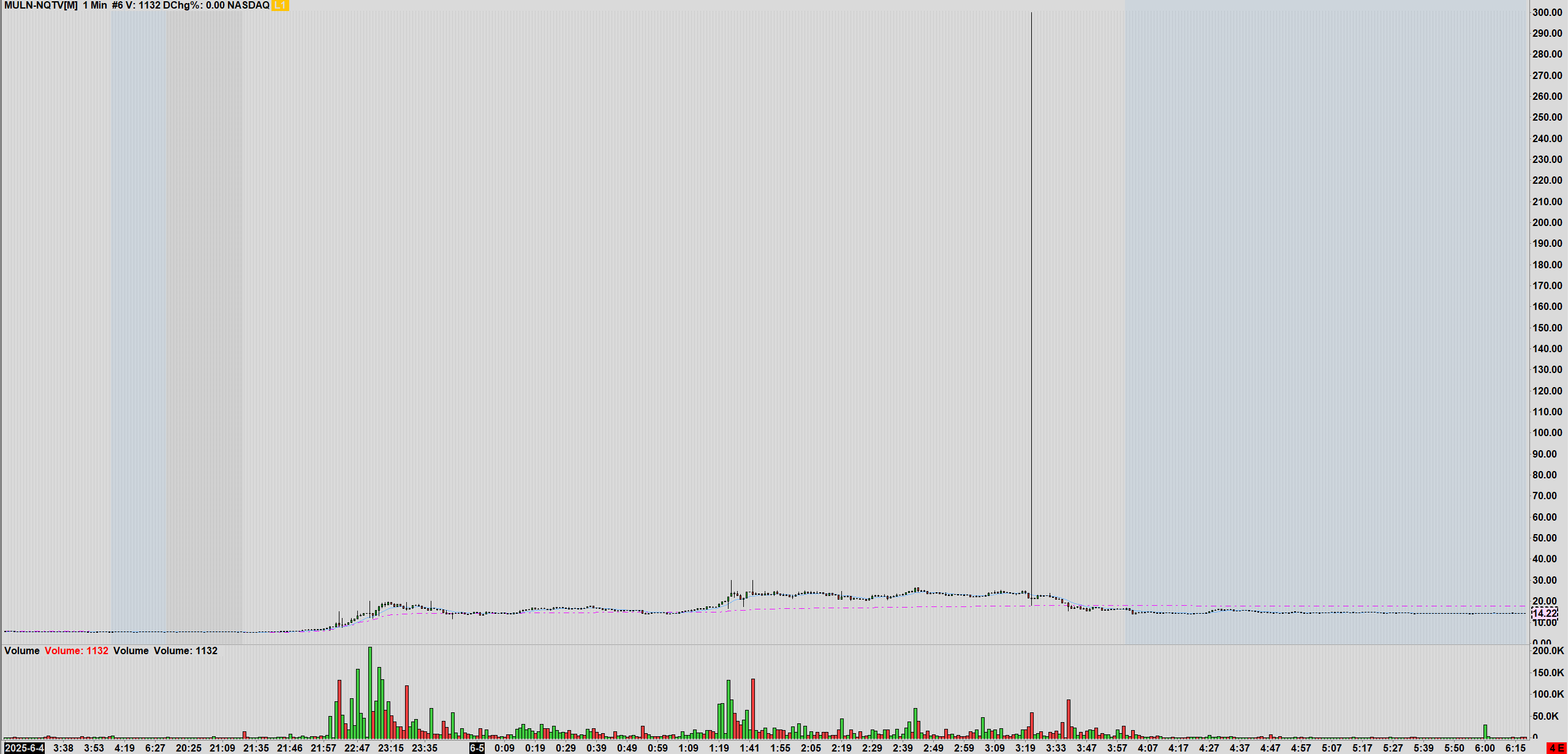 Is there a way to fix the large wicks I occasionally see on stock charts? For example in MULN-NQTV yesterday there is a candle wick at $300, but the high of day was actually around $27. Now I'm unable to look at the chart today because everything else looks so small in comparison, the rest of the candles are too small to see. |