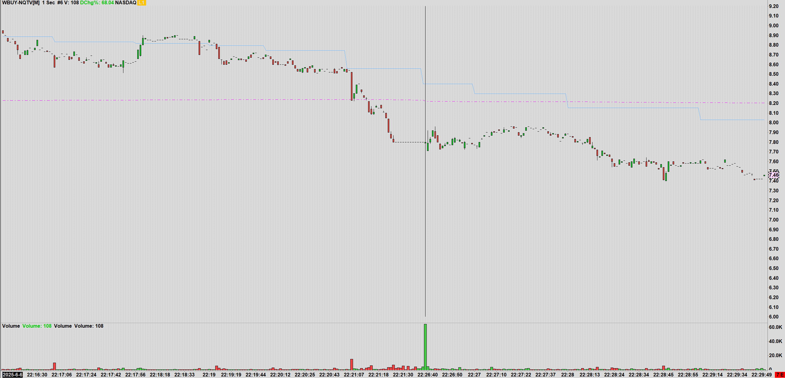 Having the same issue in WBUY today unfortunately. There are around 100 trade records in the exported intraday data file saying that price dropped from $7.80 to $6.00 in the span of a second. (Screenshots attached.) As such, the solution to "find the trade that caused the spike and remove it" isn't really working for me, as it would require me to delete 100+ trades. Sorry to repost to this thread, but are there any other solutions for quickly fixing this issue? Or are there any future plans to address this? |