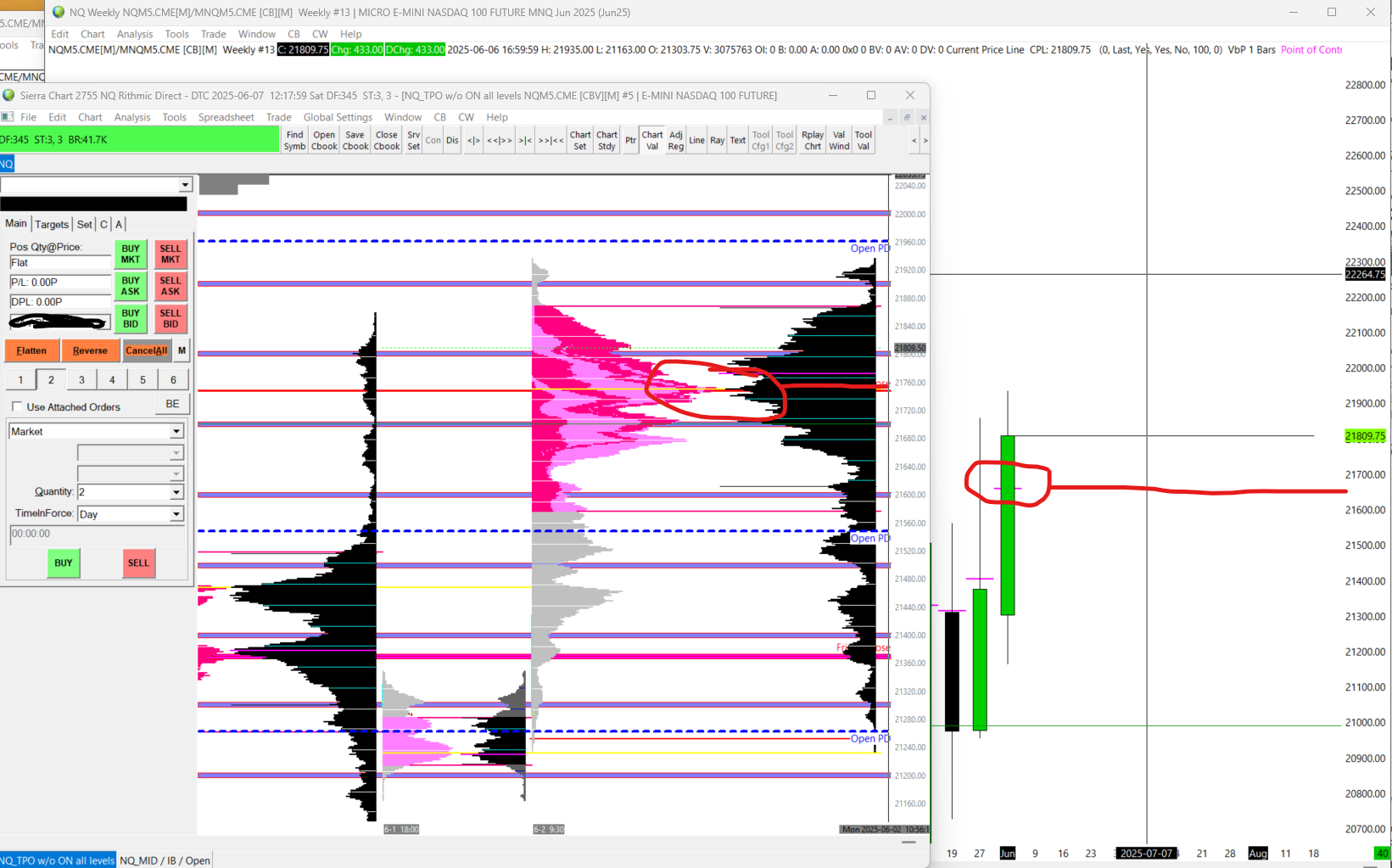 Dear support, I try to display the POC for the weekly candle for the NQ. What I dont understand is this: When I show the POC with the VbP study i get a value of 21642. When I put a TPO chart that also has a VP next to it the POC is at 21750, at the prior 21642 there is even very low volume which is completely contrary to what is shown when using the VbP study. I attached a screenshot to highlight it. Can you explain why this is? Date Time Of Last Edit: 2025-06-07 16:19:59