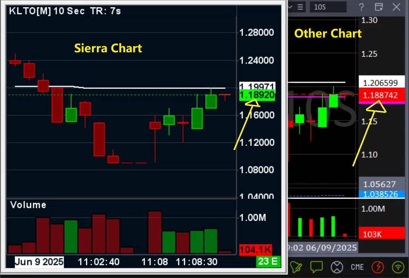 Make sierra chart data feed realtime update to the lasted price decimal number to make it faster on chart price flickering! Here a video of what am talking about. in the video look how the other chart is more flickering up and down! i would like to know if it is possible to make sierra chart like this thx for helping! https://youtu.be/M1bY0ea6hc8 the reason why is i trade Really Fast Smallcap Stock and when we have a kind of momentary pause on price action i have my eye on the level 2 and the chart and i can really see the reversal much easier when chart is flickering really fast.... Date Time Of Last Edit: 2025-06-09 16:28:28