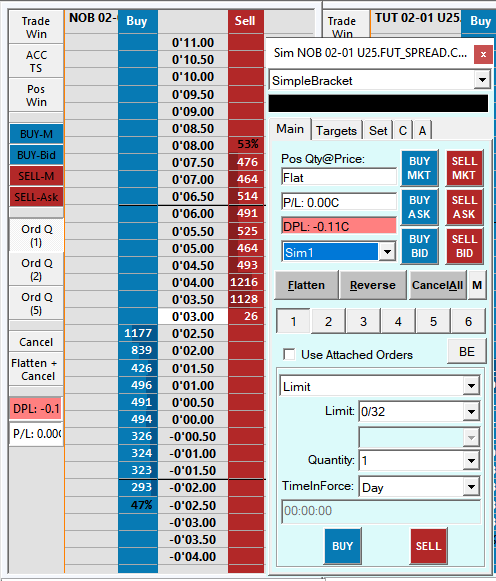 Good day Support, I'm sim trading the NOB spread (U25.FUT_SPREAD.CBOT), but the P&L only updates in $0.01 increments, regardless of price movement (in the photo I've attached I've made a consecutive amount of trades to test any changes to see if any changes it isn't increments of 0.11c but 11 trades where the loss result was 0.01c/trade), when it should be $15.625/tick currency increments. I've attempted so far to change symbol settings and adjust the tick size, price display format, and currency value per tick but nothing seems to be changing. If you could help me to fix this pnl display issue it would be greatly appreciated. Thanks |