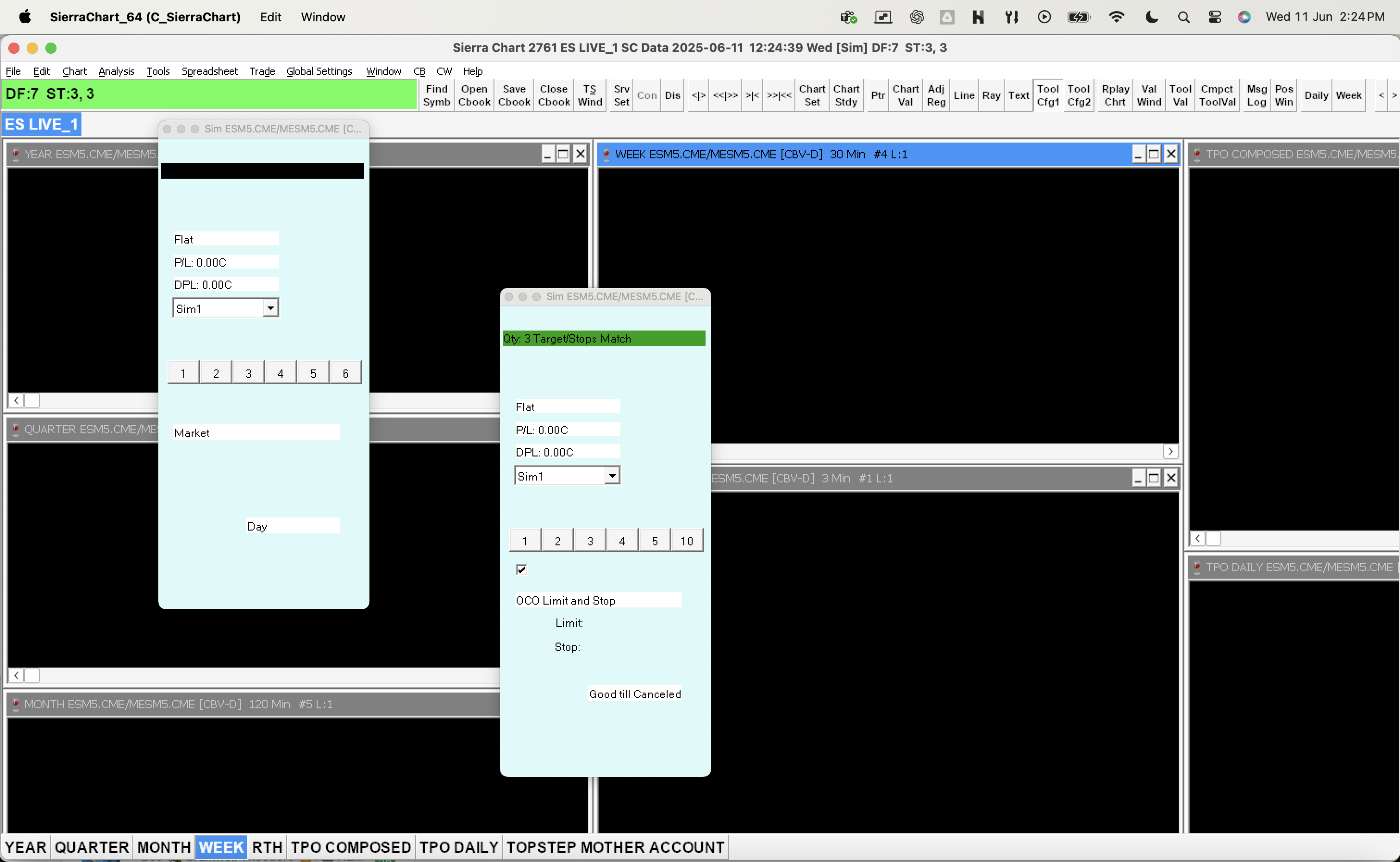 There is nothing in the log that shows any issues with the data. Although we do see a couple of incorrect symbols being referenced, in particular the following: - MESM5.CME - ESM20_FUT_CME Since you are connected to SC Data, these symbols should be MESM25-CME and ESM20-CME. Select "Edit >> Translate Symbols to Current Service" to try and update those symbols to the proper symbols for the current service you are connected to. Please close that chartbook and open a single chart for ESM25-CME (assuming you are connected to SC Data). Let us know if that one chart loads properly or not. For the most reliable, advanced, and zero cost futures order routing, use the Teton service: Sierra Chart Teton Futures Order Routing |