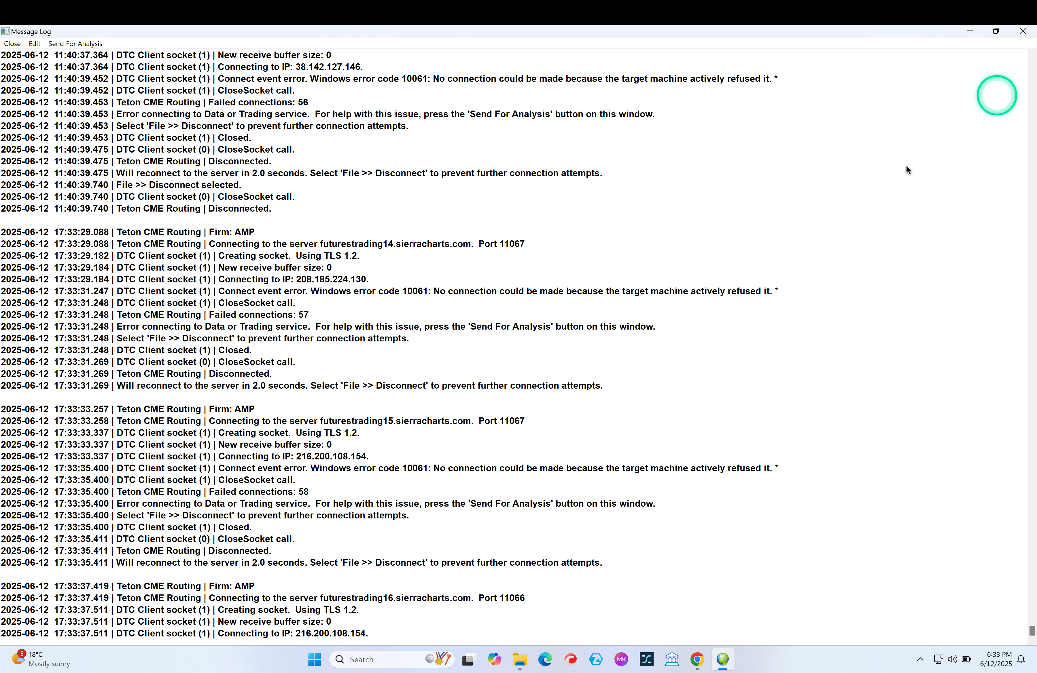 Refer to the following: Data/Trading Service Connection and Symbol Issues: 1.2. Network Communication or Server Problem For the most reliable, advanced, and zero cost futures order routing, use the Teton service: Sierra Chart Teton Futures Order Routing |