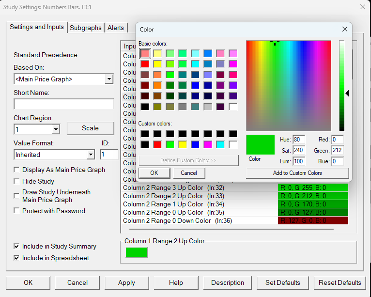 It looks like you have not selected the color button on the Settings window to bring up the color selector. You need to select that color that is showing at the bottom to bring that up. Attached is an image what you should get when you select that color. With regards to the Markers not showing in the other columns, this is because you have the set the "Graph Draw Type" to "Renko Brick with Wicks", but since this is not a Renko chart, it does not make sense. Change the "Graph Draw Type" to "OHLC Bars" or "Candlestick" and you will see the markers in all the bars. For the most reliable, advanced, and zero cost futures order routing, use the Teton service: Sierra Chart Teton Futures Order Routing |