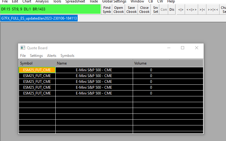 Hello The symbol I have an issue is : ESM25_FUT_CME / June 2025 Message LOG: Software version: 2528 64-bit | 2025-06-16 15:35:47.888 Primary Thread ID: 12536 | 2025-06-16 15:35:47.888 Usage end date: 2025-09-11 | 2025-06-16 15:35:47.888 Enabled for: Advanced Features 2. | 2025-06-16 15:35:47.888 Enabled for: Sierra Chart Historical Data Service. | 2025-06-16 15:35:47.888 Enabled for: Denali Real-Time Exchange Data Feed. | 2025-06-16 15:35:47.888 Enabled for: Delayed Denali Exchange Data Feed. | 2025-06-16 15:35:47.888 Allow Support for Sierra Chart Data Feeds is enabled. | 2025-06-16 15:35:47.888 Current selected Data/Trading service: Teton CME Order Routing | 2025-06-16 15:35:47.888 Custom symbol settings values: enabled | 2025-06-16 15:35:47.888 Chart Update Interval: 500 | 2025-06-16 15:35:47.888 Intraday Data Storage Time Unit: 1 | 2025-06-16 15:35:47.888 Time Zone: +00:00:00 (UTC+00) | 2025-06-16 15:35:47.888 2025-06-16 15:35:47 Local computer time in UTC | 2025-06-16 15:35:47.888 2025-06-16 15:35:47 Local computer time in SC Time Zone | 2025-06-16 15:35:47.888 2025-06-15 13:18:43 Server time in UTC | 2025-06-16 15:35:47.888 Local computer UTC time and Server UTC time difference: 1 seconds. | 2025-06-16 15:35:47.888 Program path: C:\SierraChart\ | 2025-06-16 15:35:47.888 Data Files path: C:\SierraChart\Data\ | 2025-06-16 15:35:47.888 OS Version Number: 10.0 | 2025-06-16 15:35:47.888 Locale Setting: C | 2025-06-16 15:35:47.888 DLLs: UserContributedStudies_64.dll | 2025-06-16 15:35:47.889 Allowed protected custom studies: | 2025-06-16 15:35:47.889 Crash reporter started: true | 2025-06-16 15:35:47.889 Saved Chartbook: G7FX_FULL_ES_updatedJan2023-230106-184113.Cht. Time: 0.0263 seconds. | 2025-06-16 15:36:02.452 Unsubscribed from market depth data for ESM25_FUT_CME | 2025-06-16 15:36:02.944 File >> Disconnect selected. | 2025-06-16 15:38:25.815 Teton CME Order Routing | Waiting for socket receive thread to end | 2025-06-16 15:38:25.815 DTC Client socket (1) | CloseSocket call. | 2025-06-16 15:38:25.815 DTC Client socket (1) | Max send buffers used during socket life: 3 | 2025-06-16 15:38:25.815 DTC Client socket (1) | Max send buffer size during socket life: 329 | 2025-06-16 15:38:25.815 DTC Client socket (1) | Shutdown started. Waiting for graceful close. | 2025-06-16 15:38:25.815 Teton CME Order Routing | Disconnected. | 2025-06-16 15:38:25.815 DTC Client socket (1) | Socket gracefully closed by remote side. | 2025-06-16 15:38:25.978 DTC Client socket (1) | Closed. | 2025-06-16 15:38:25.978 Teton CME Order Routing | Firm: Advantage/Stage5 | 2025-06-16 15:38:44.177 Teton CME Order Routing | Connecting to the server futurestrading14.sierracharts.com. Port 11093 | 2025-06-16 15:38:44.177 DTC Client socket (1) | Creating socket. Using TLS 1.2. | 2025-06-16 15:38:44.178 DTC Client socket (1) | New receive buffer size: 0 | 2025-06-16 15:38:44.178 DTC Client socket (1) | Connecting to IP: 208.185.224.130. | 2025-06-16 15:38:44.178 Teton CME Order Routing | Network connection to server complete. | 2025-06-16 15:38:44.321 Teton CME Order Routing | Starting socket receive thread. | 2025-06-16 15:38:44.321 Teton CME Order Routing | Sending encoding request to server: Binary VLS. Compression: none | 2025-06-16 15:38:44.321 Teton CME Order Routing | Setting DTC encoding to Binary VLS | 2025-06-16 15:38:44.722 Teton CME Order Routing | Sending logon request message. | 2025-06-16 15:38:44.722 Teton CME Order Routing | Received logon response. | 2025-06-16 15:38:44.927 Teton CME Order Routing | Server Name: SC DTC Server. Build=53189. | 2025-06-16 15:38:44.927 Teton CME Order Routing | Server protocol version: 8. Client protocol version: 8 | 2025-06-16 15:38:44.927 Teton CME Order Routing | Successfully connected. Connected to SC DTC Protocol server. Service=cme_ilink3.trading|SymbolSettings=cme_ilink_live.trading. | 2025-06-16 15:38:44.927 Teton CME Order Routing | Trading is supported. | 2025-06-16 15:38:44.927 Teton CME Order Routing | Order cancel and replace is supported. | 2025-06-16 15:38:44.927 Teton CME Order Routing | OCO Orders supported. | 2025-06-16 15:38:44.927 Teton CME Order Routing | Bracket Orders supported. | 2025-06-16 15:38:44.927 Teton CME Order Routing | Connected to server complete. | 2025-06-16 15:38:44.927 Triggering next historical data download in queue. | 2025-06-16 15:38:44.930 Subscribing to symbol for symbol alert. CLV23_FUT_CME | 2025-06-16 15:38:44.930 Mapping CLV23_FUT_CME to CLV23. Service code: nymex | 2025-06-16 15:38:44.930 Using symbol data fast lookup vector | 2025-06-16 15:38:44.930 SC DTC Delayed Exchange Data | Starting real-time market data updates for: CLV23_FUT_CME (CLV23). ID: 1 Service code: nymex | 2025-06-16 15:38:44.931 SC DTC Delayed Exchange Data | Connecting to the server ds27.sierracharts.com. Port 10043 | 2025-06-16 15:38:44.931 SC DTC Delayed Exchange Data | Requesting security definition data for: CLV23_FUT_CME (CLV23). ID: 1 | 2025-06-16 15:38:44.931 Subscribing to symbol for symbol alert. CLV23_FUT_CME | 2025-06-16 15:38:44.931 Subscribing to symbol for symbol alert. ESH24_FUT_CME | 2025-06-16 15:38:44.931 Mapping ESH24_FUT_CME to ESH24. Service code: cme | 2025-06-16 15:38:44.931 SC DTC Delayed Exchange Data | Starting real-time market data updates for: ESH24_FUT_CME (ESH24). ID: 2 Service code: cme | 2025-06-16 15:38:44.932 SC DTC Delayed Exchange Data | Requesting security definition data for: ESH24_FUT_CME (ESH24). ID: 2 | 2025-06-16 15:38:44.932 Updated verified funded futures trading account ending date to: 2025-07-16 15:38:44 | 2025-06-16 15:38:44.932 Teton CME Order Routing | Performing query for most recent Order Activity Date-Time. | 2025-06-16 15:38:44.932 No download requests in the queue to start downloads for. | 2025-06-16 15:38:44.933 DTC Client socket (2) | Creating socket. | 2025-06-16 15:38:44.976 DTC Client socket (2) | New receive buffer size: 0 | 2025-06-16 15:38:44.976 DTC Client socket (2) | Connecting to IP: 216.200