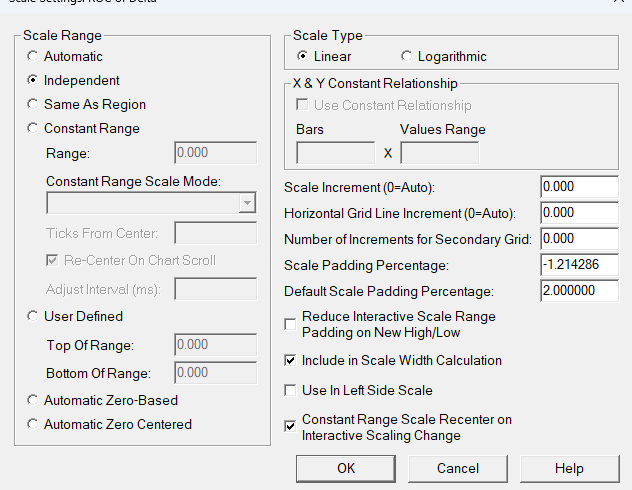 When I initially created this study, the data displayed above and below a fixed horizontal axis with "0" as its value (I'm using the "Study Subgraphs Reference" study). However, the data is no longer using "0" as an "anchor" point. Can you please tell me how to change back to the original settings? I've also attached the scale settings if that helps? Thank you. Date Time Of Last Edit: 2025-06-16 13:29:53