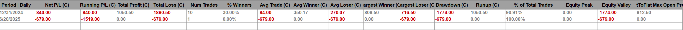 There appears to be an issue with the TAL updating. The display settings don't change from between backtests as the testing period is fixed. Upon checking the Display Settings tab, a few times I have noticed that the refresh button for clearing prior history has a queue of 4-8 implying a lag. Also today the Period Stats and Statistics tabs are incorrect but the Chart Stats tab is correct. I've attached screenshots of those. The replay started as of 2024-21-31 but PnL is appearing for the current date even though the testing period ends prior to it. |