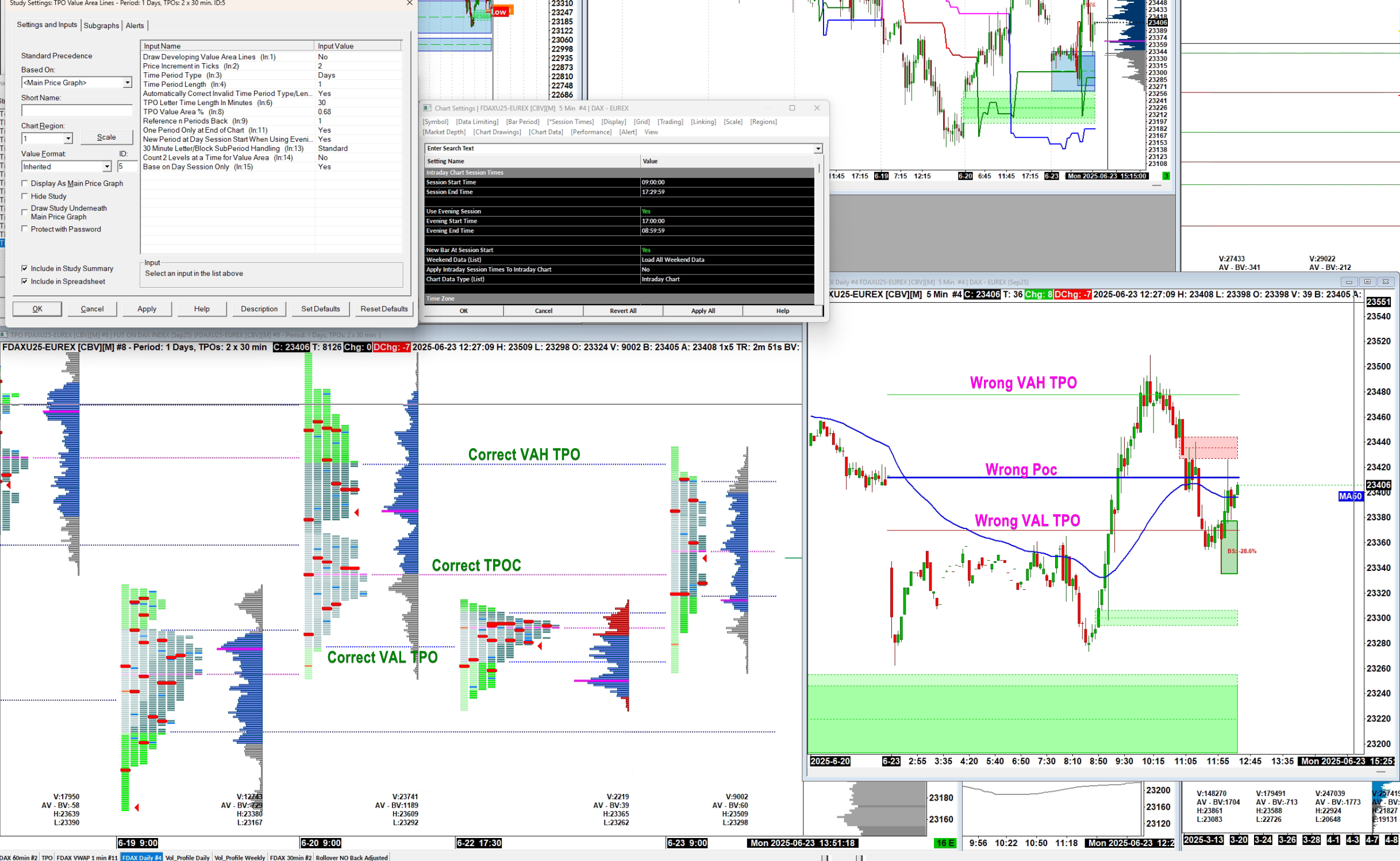 Dear Team, On a chart with session times divided into RTH and Evening, I imported the TPO-Value Area Lines indicator with a reference of 1 Day Back, set only for the Day Session. However, the levels it displays are incorrect. Meanwhile, the same indicator applied to the Volume Profile levels, with the same settings, works correctly. I’m attaching some example images to show the issue. Thanks Date Time Of Last Edit: 2025-06-23 10:54:16
