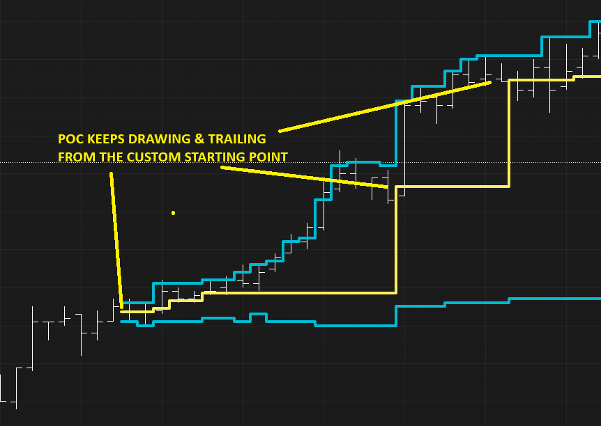Hello, 1) Is it possible to anchor the beginning of the Volume Profile based on any custom bar on the chart by clicking and manually selecting a bar from which custom VolProfile would continue calculating? I see that it can be done for Daily sessions and other typical intervals, but is it possible to start the VolProfile from any point/bar on the chart going forward? 2) Is it possible to draw/display the Point of Control (POC) from the custom point of VolProfile going forward? The effect would be that each time POC level changes, it would keep drawing a horizontal line/floor for all POC levels from the custom beginning point. 3) Could this be done by using a Volume Profile drawing feature/manual point and click/select custom bar to start drawing and could this be automated to start drawing VolProfiles for each Swing High/Lows etc. Thank you very much. Date Time Of Last Edit: 2025-06-29 20:18:20