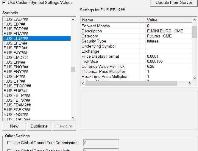When I go to Global Symbol Settings and view the correct symbol (F.US.EEU) it is defaulted to Price Display Format 0.0001 and tick size 0.000100. Can I change it here? thank you