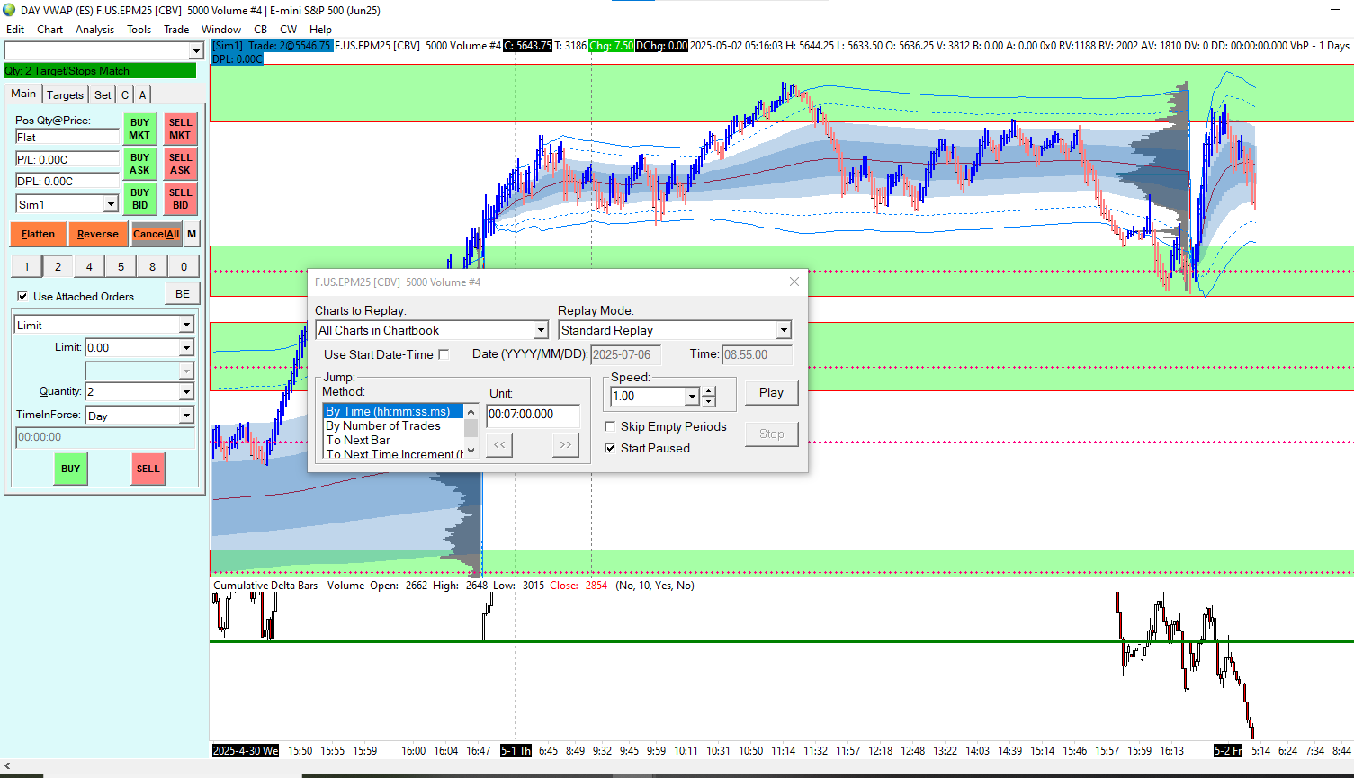 From what you show in your image, the Replay is running. It may be that at that moment, there was no specific data to display, and if you have not selected the option for "Skip Empty Periods", then the system will continue to run at the same rate, even if there is no data. In other words, 5 minutes of empty data will cause the replay to run and not display anything for that 5 minute period. As to the "Use Start Date-Time", you need to have the data already existing in the chart for the time you specified. It looks like this is the case, but again we wonder if there was no data at the time of 02:00:00 in that chart. Or perhaps the chart Session Times do not include that time. For the most reliable, advanced, and zero cost futures order routing, use the Teton service: Sierra Chart Teton Futures Order Routing |
